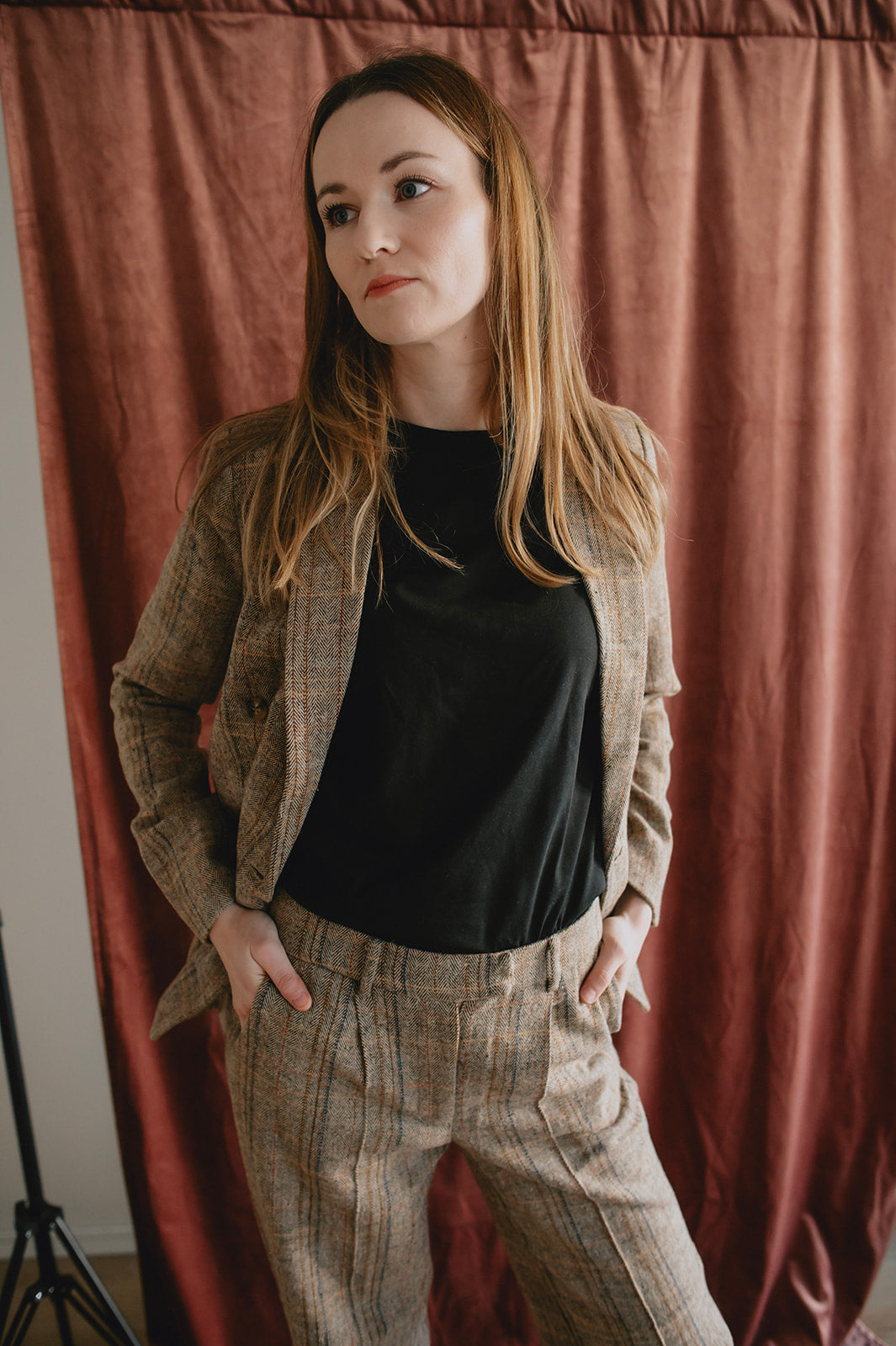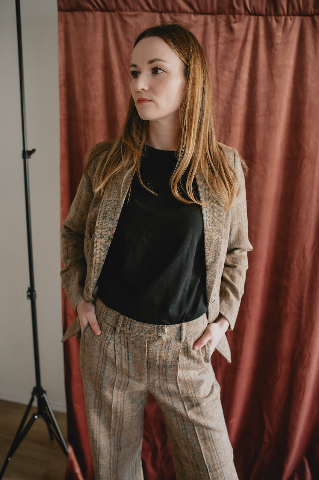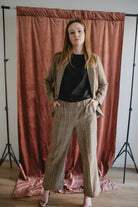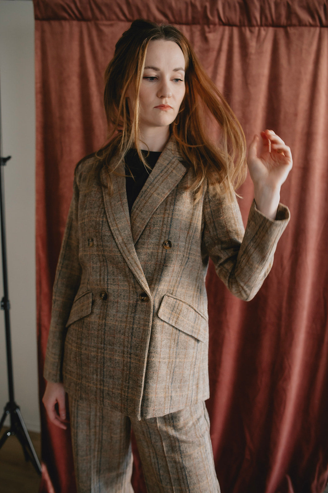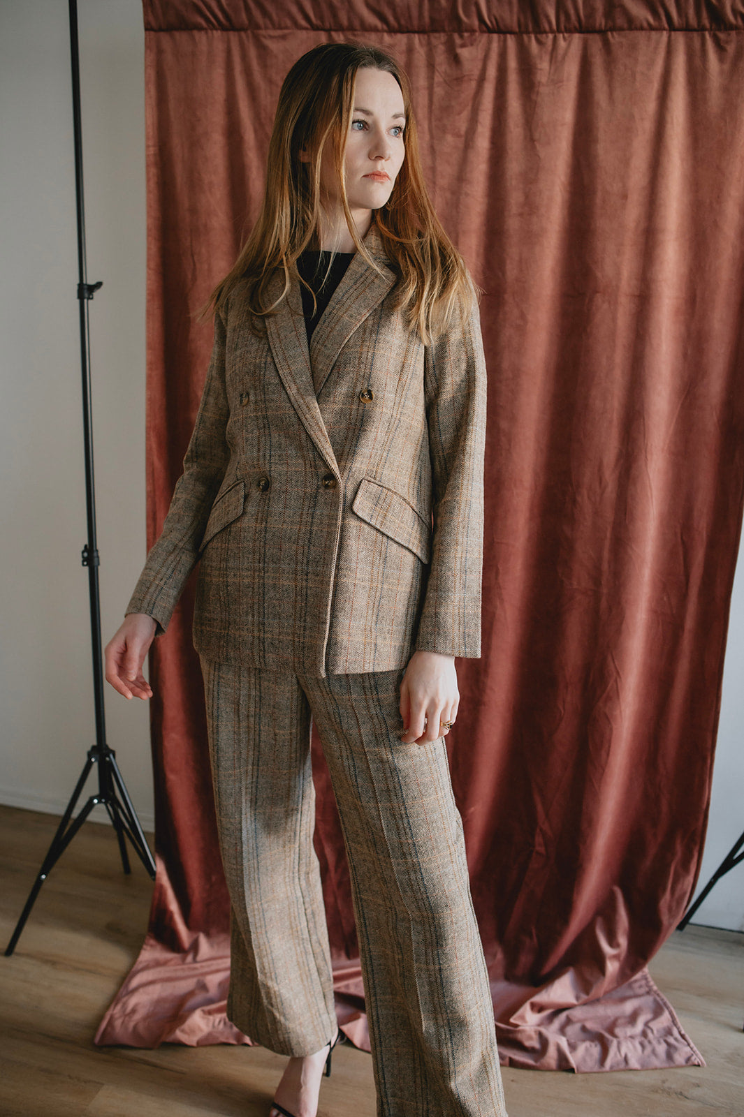 Pair with the matching trousers for a complete look, or layer over a sweater with some denim and boots for the perfect fall look.