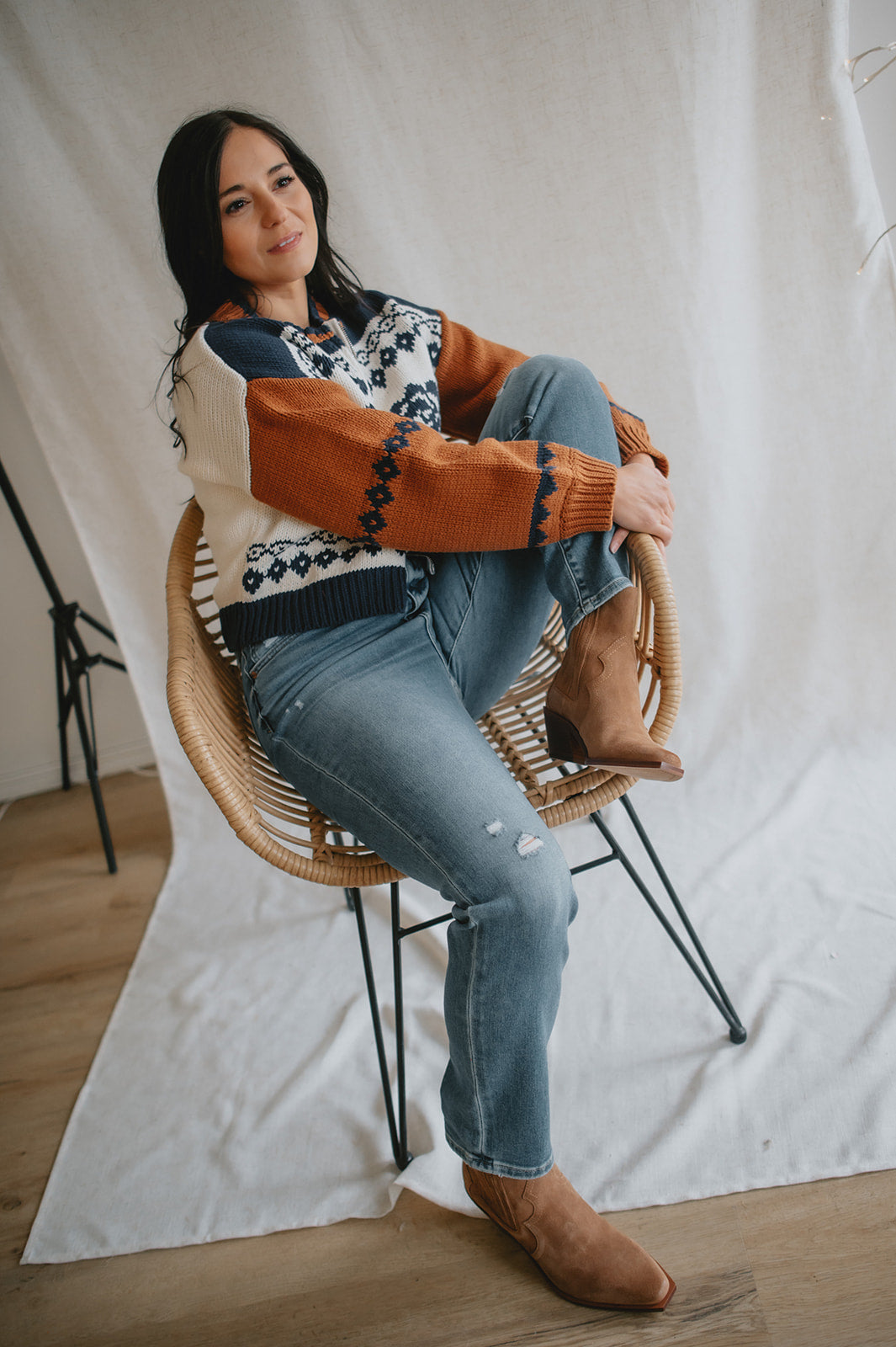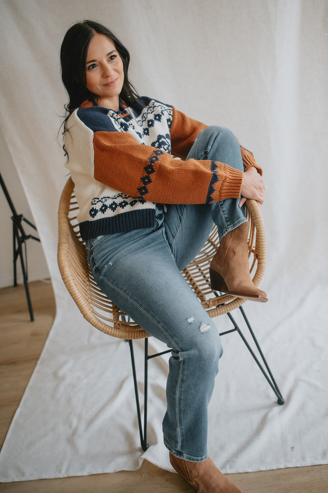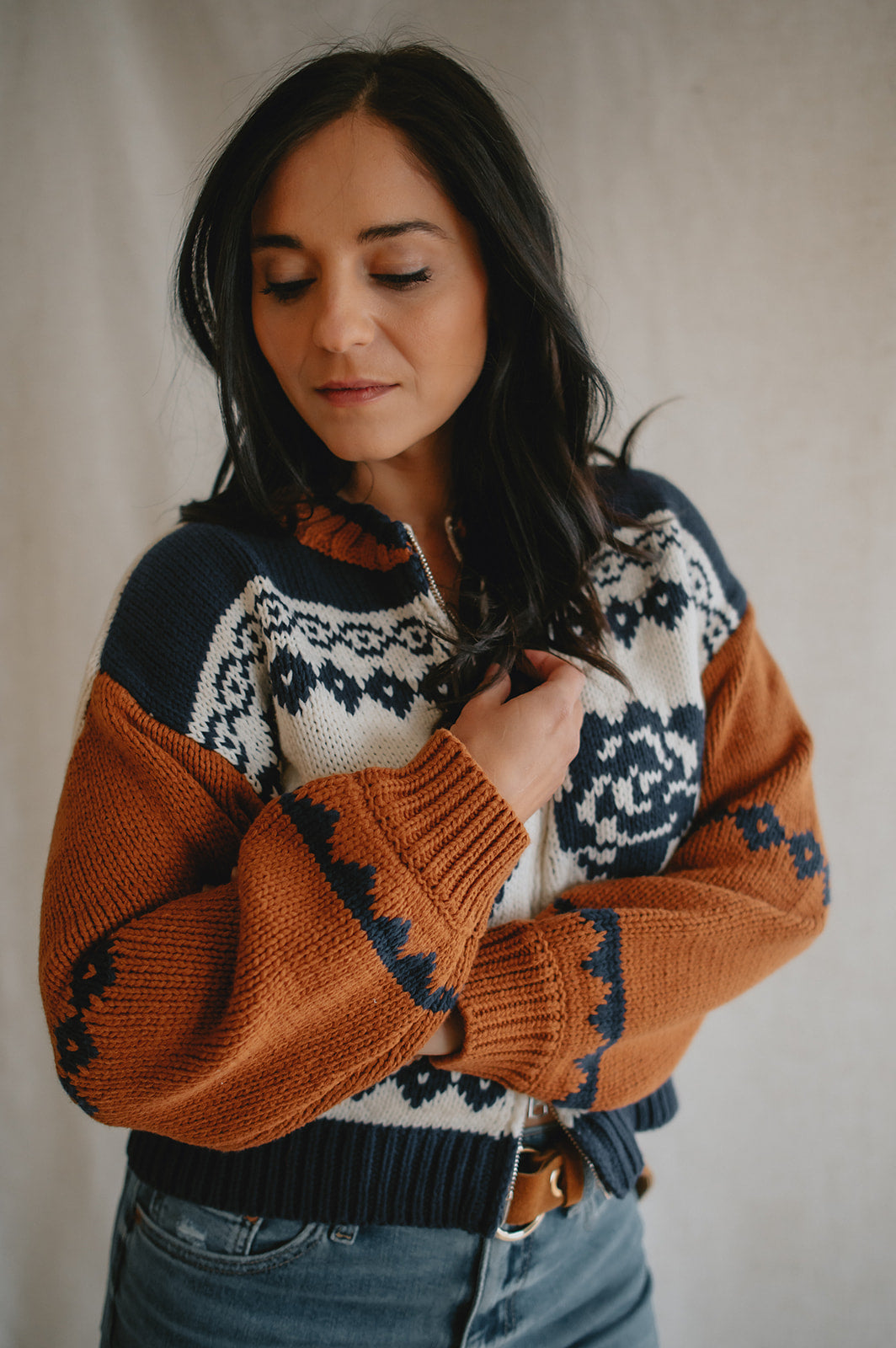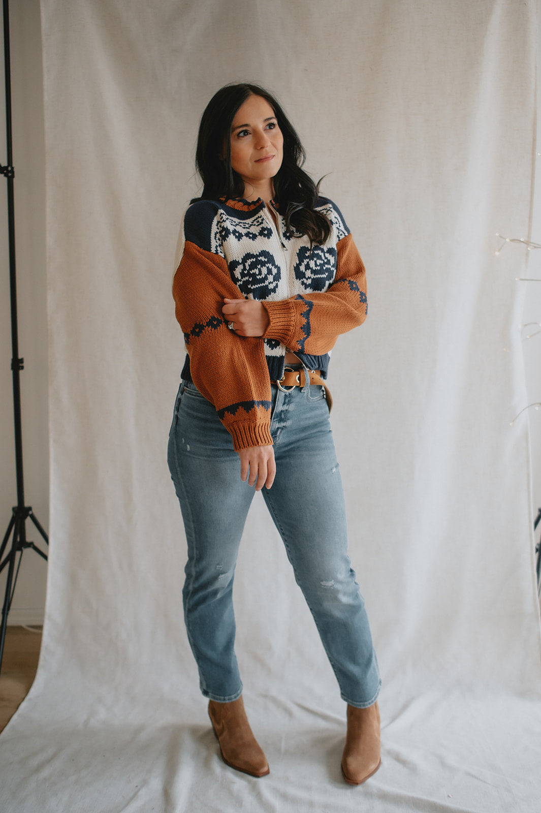Elevate your wardrobe with the Sage the Label Sweet Rose Jacquard Zip Sweater Jacket. Crafted with a delicate rose jacquard pattern, this boxy silhouette sweater offers a modern, relaxed fit. The front zipper closure adds versatility and ease, making it perfect for layering on cooler days. Stylish yet comfortable, it’s an ideal piece to effortlessly enhance your casual looks.