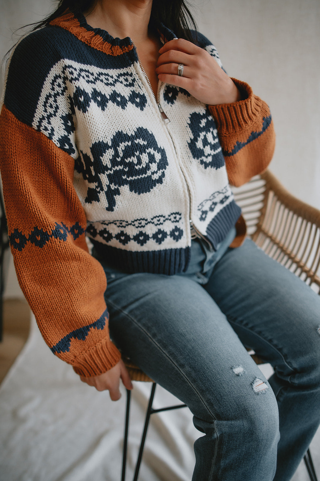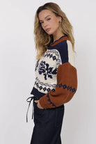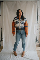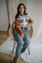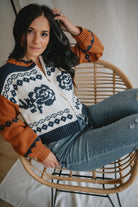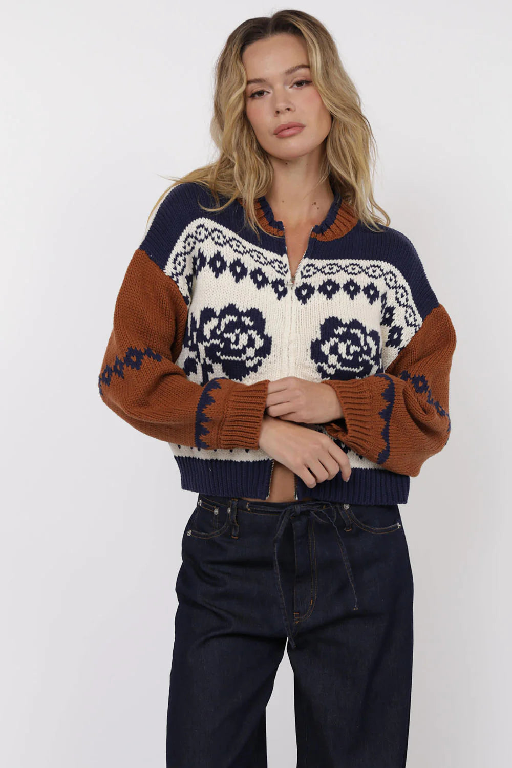 The Sweet Rose Jaquard Zip Sweater - Ivory Multi