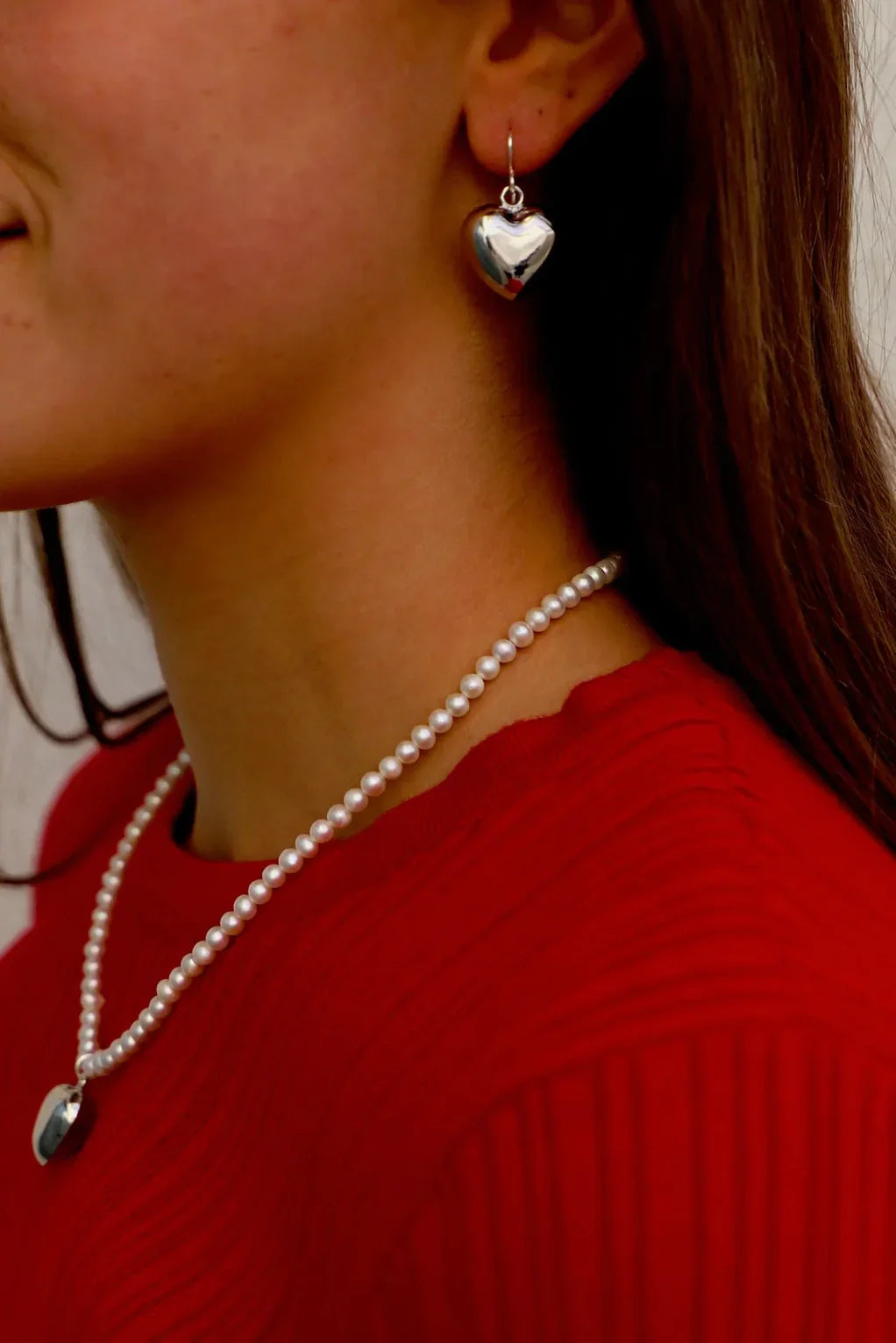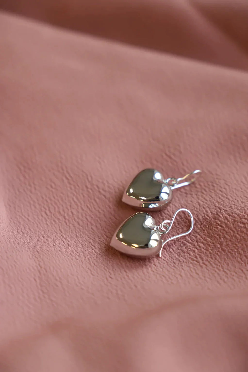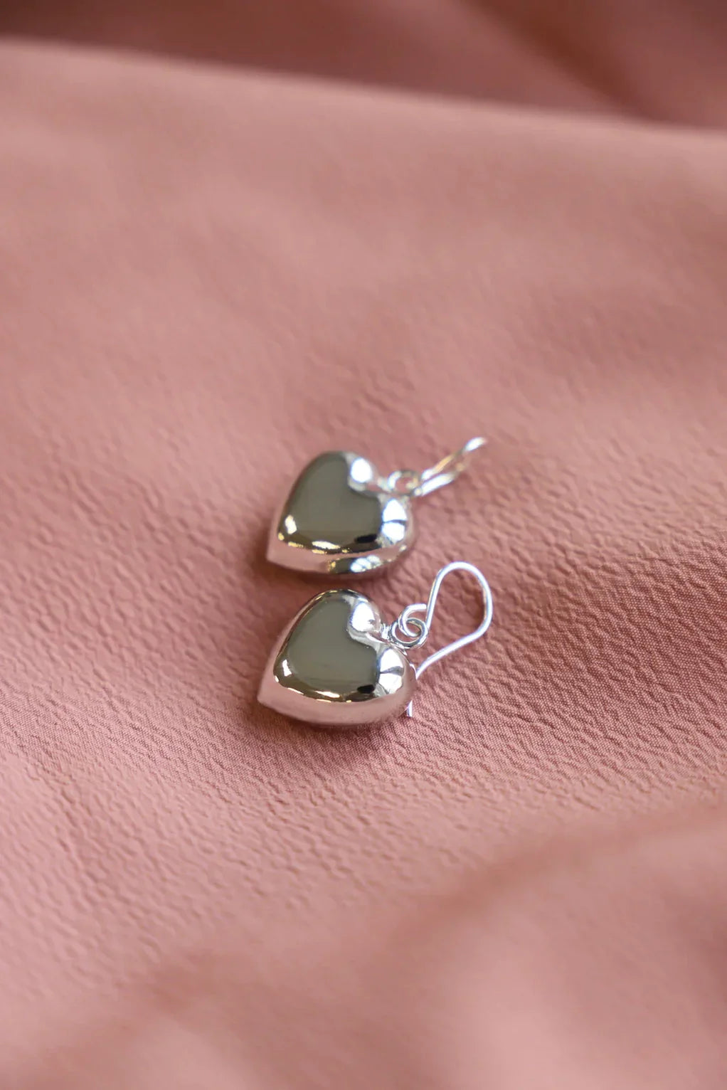 - Materials || Rhodium plated brass puff heart, sterling silver earwires