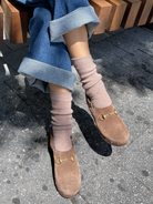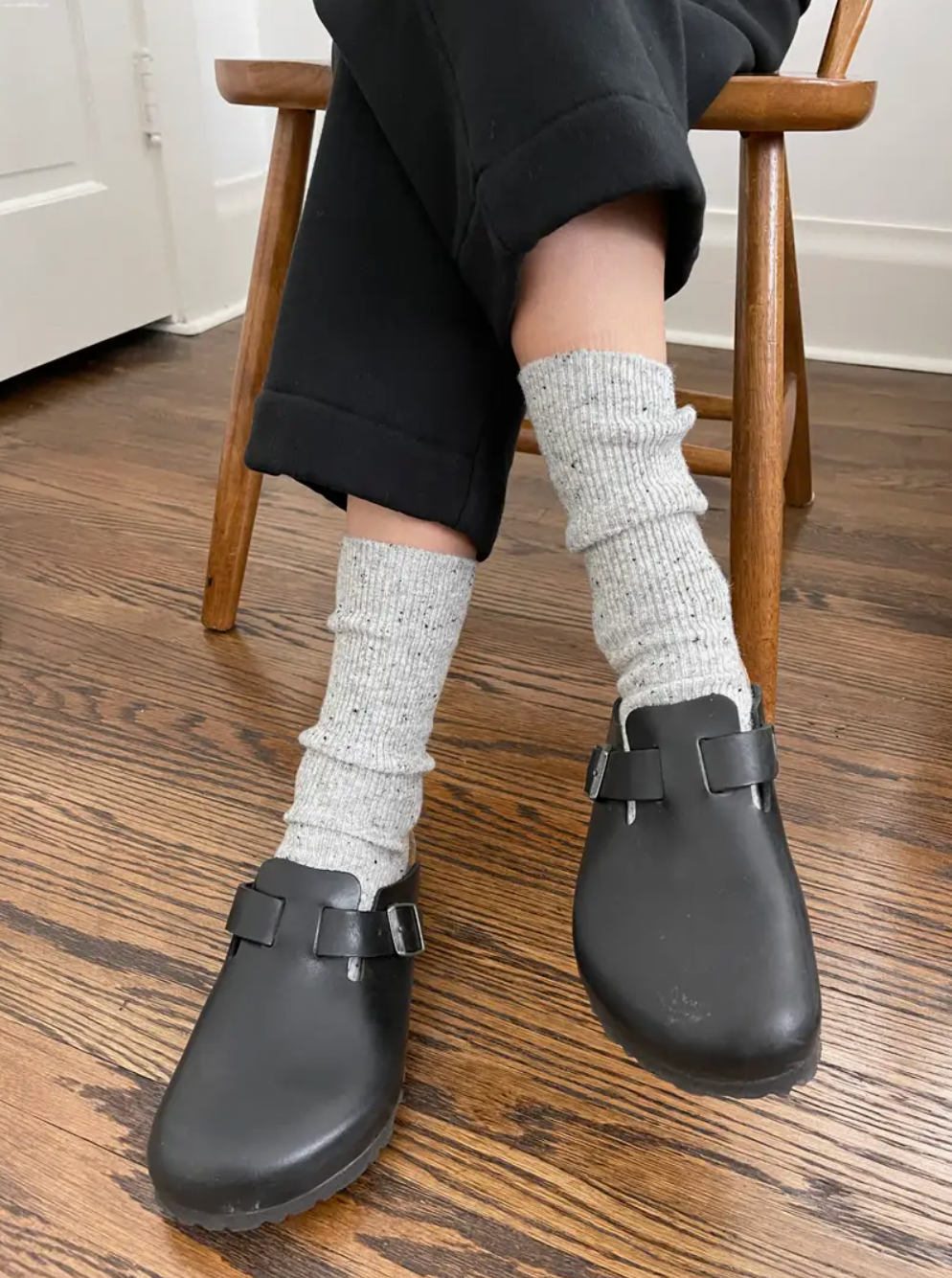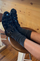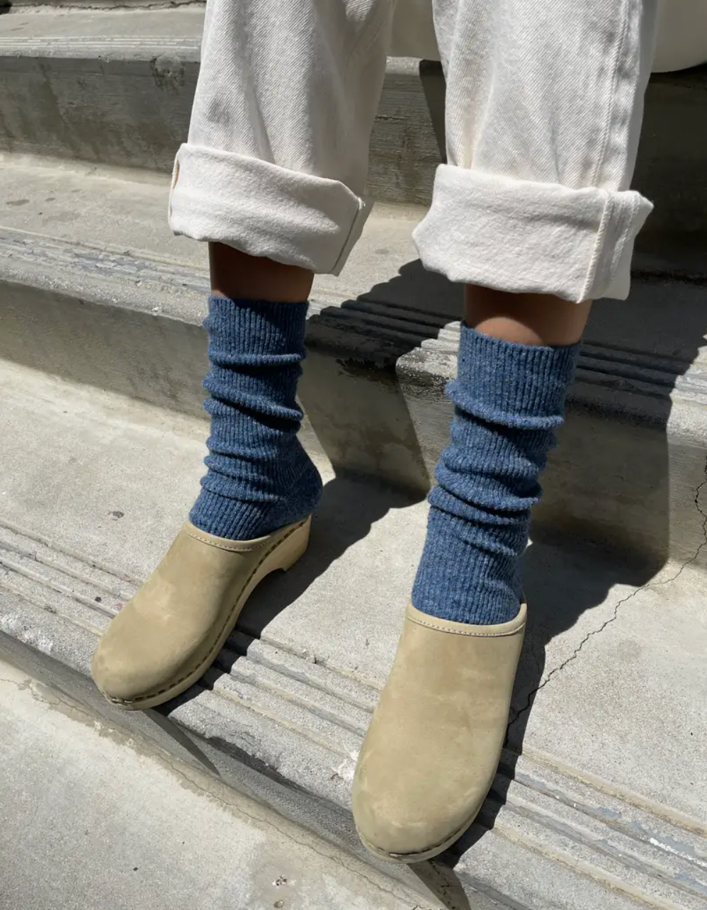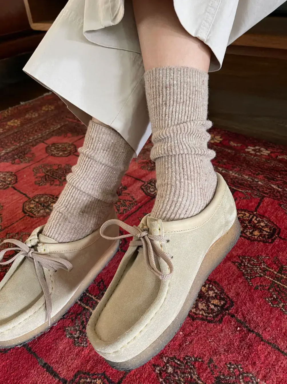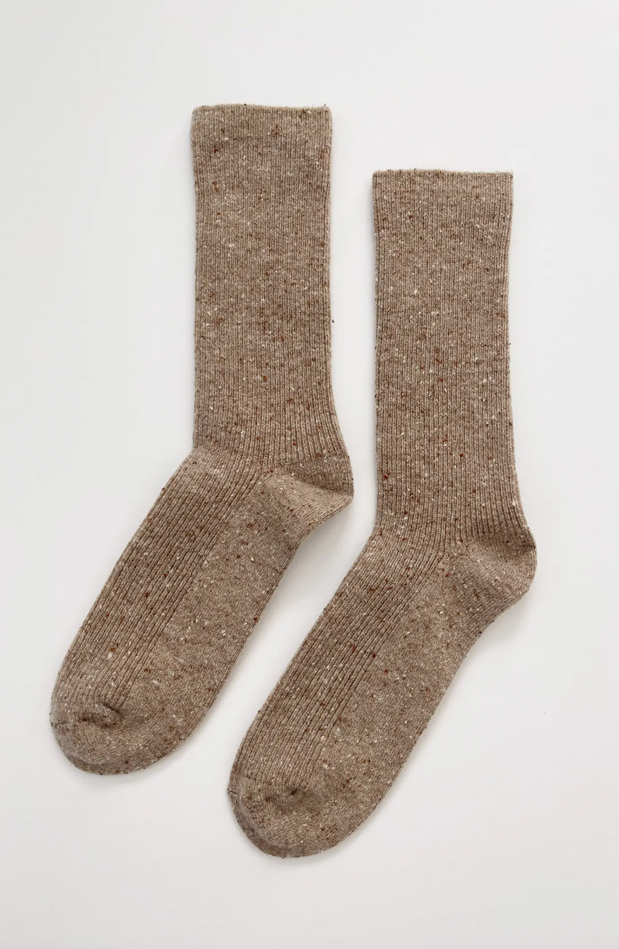 An essential sock to pair with all your footwear staples on cooler days. The extra length can be worn up for an added layer of warmth from the wool blend yarn, or scrunched or folded with your favourite booties.