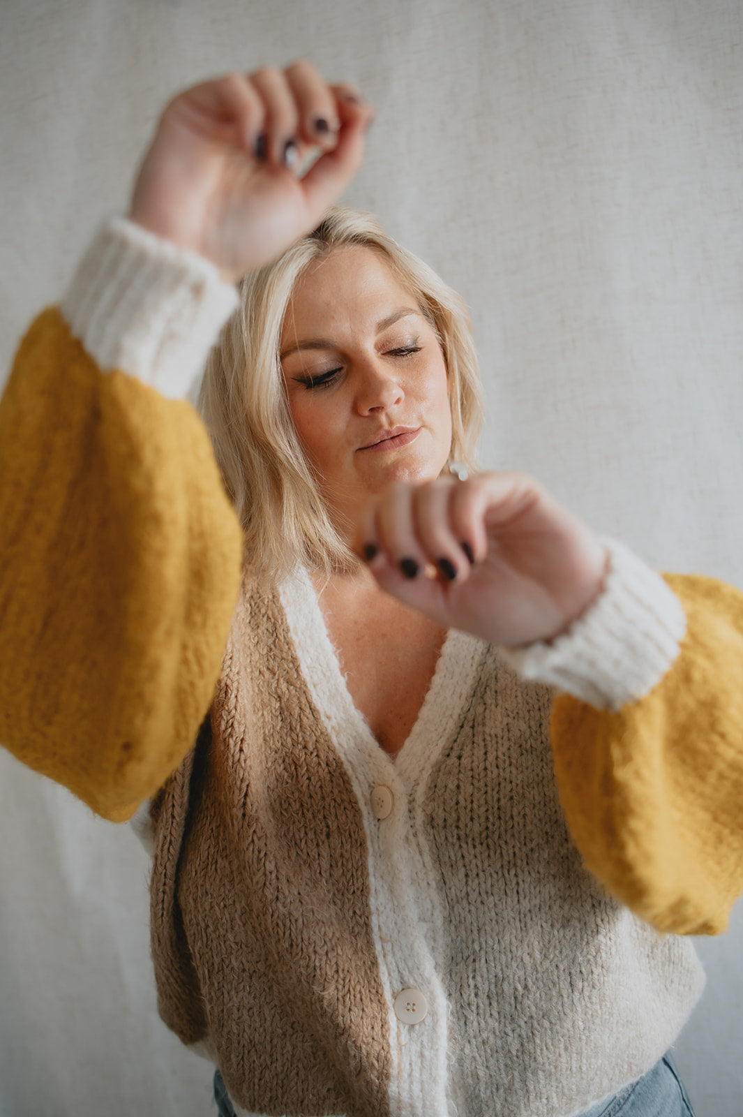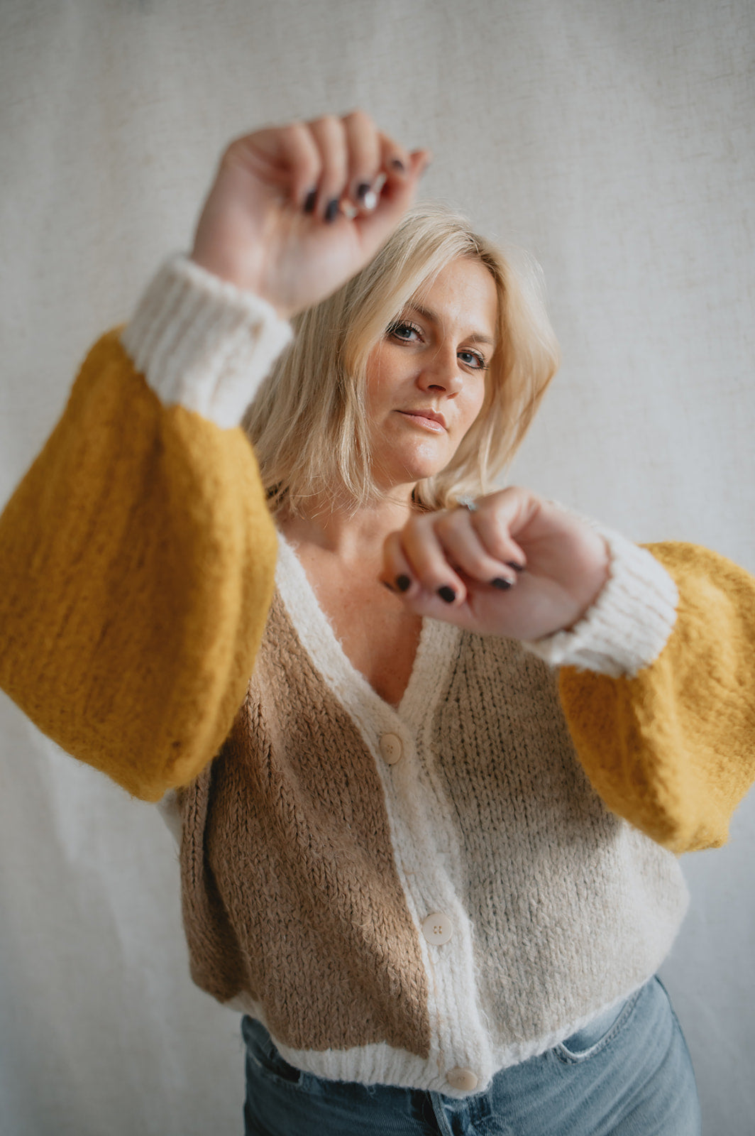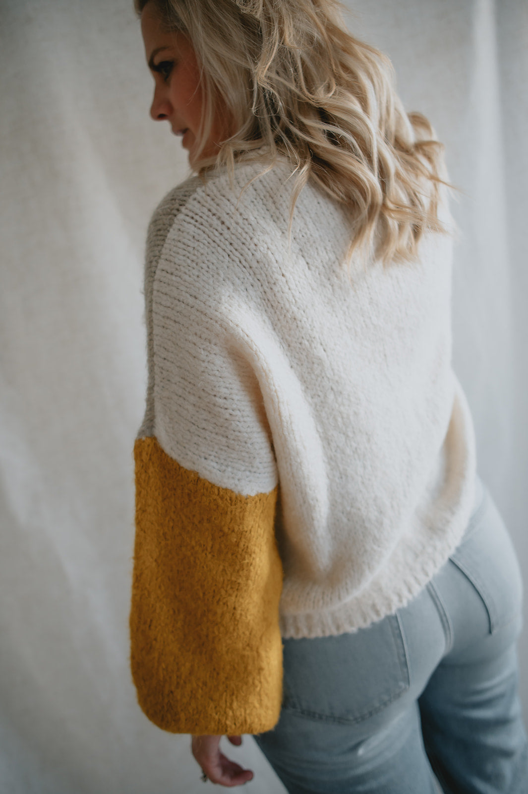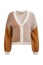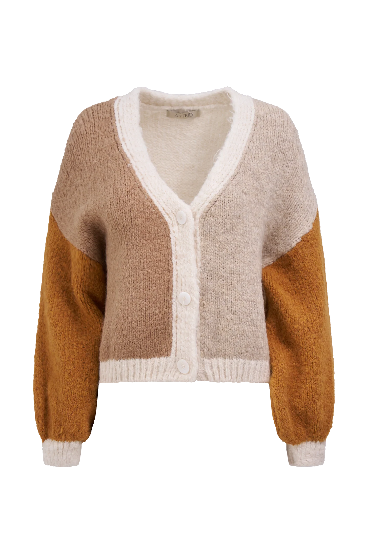 The Colour Block Cardigan with a modern essential that brings warmth and dimension to any wardrobe. Designed in a palette of softly blended neutrals, this cardigan features distinct colour block panels in shades of cream, taupe, and mustard, offering a versatile look that pairs beautifully with everything from denim to loungewear.