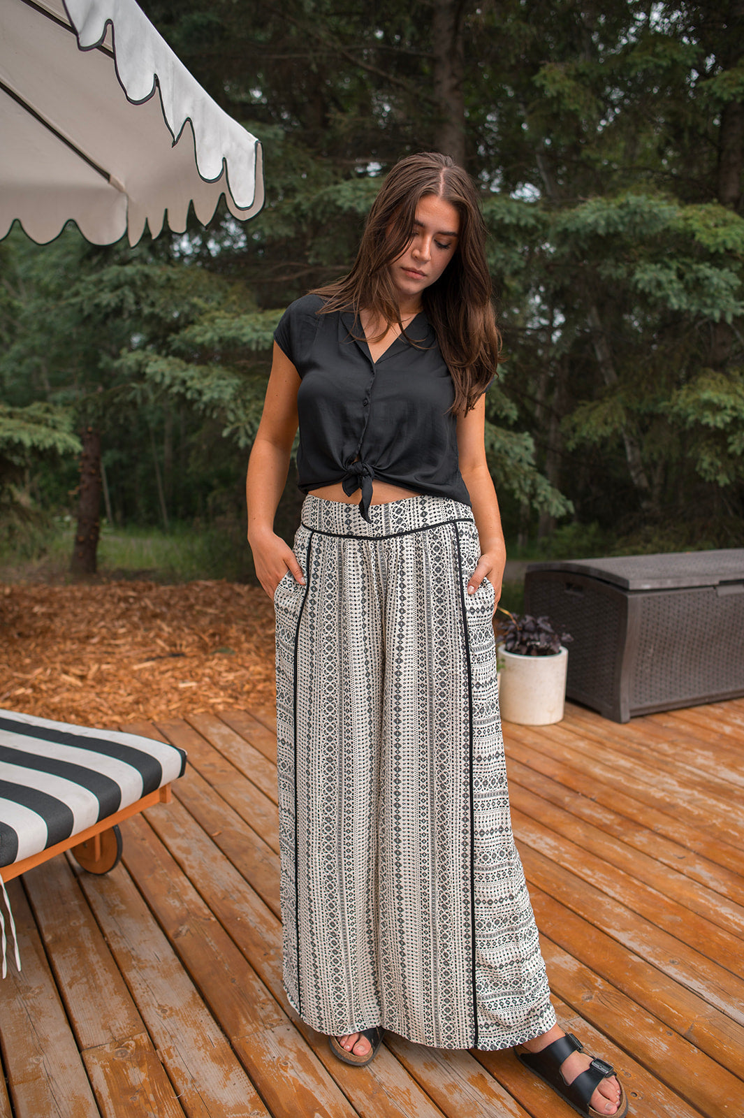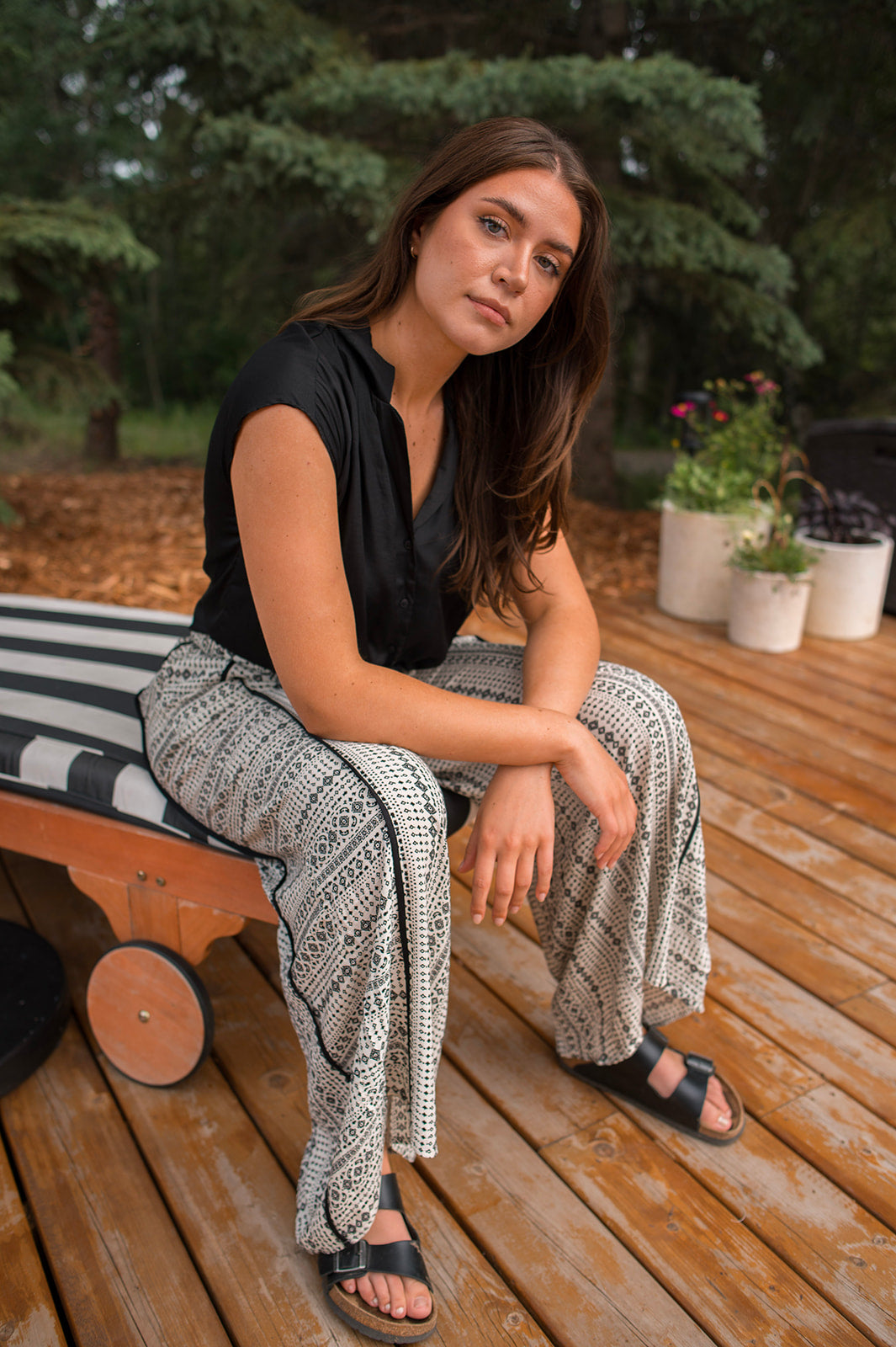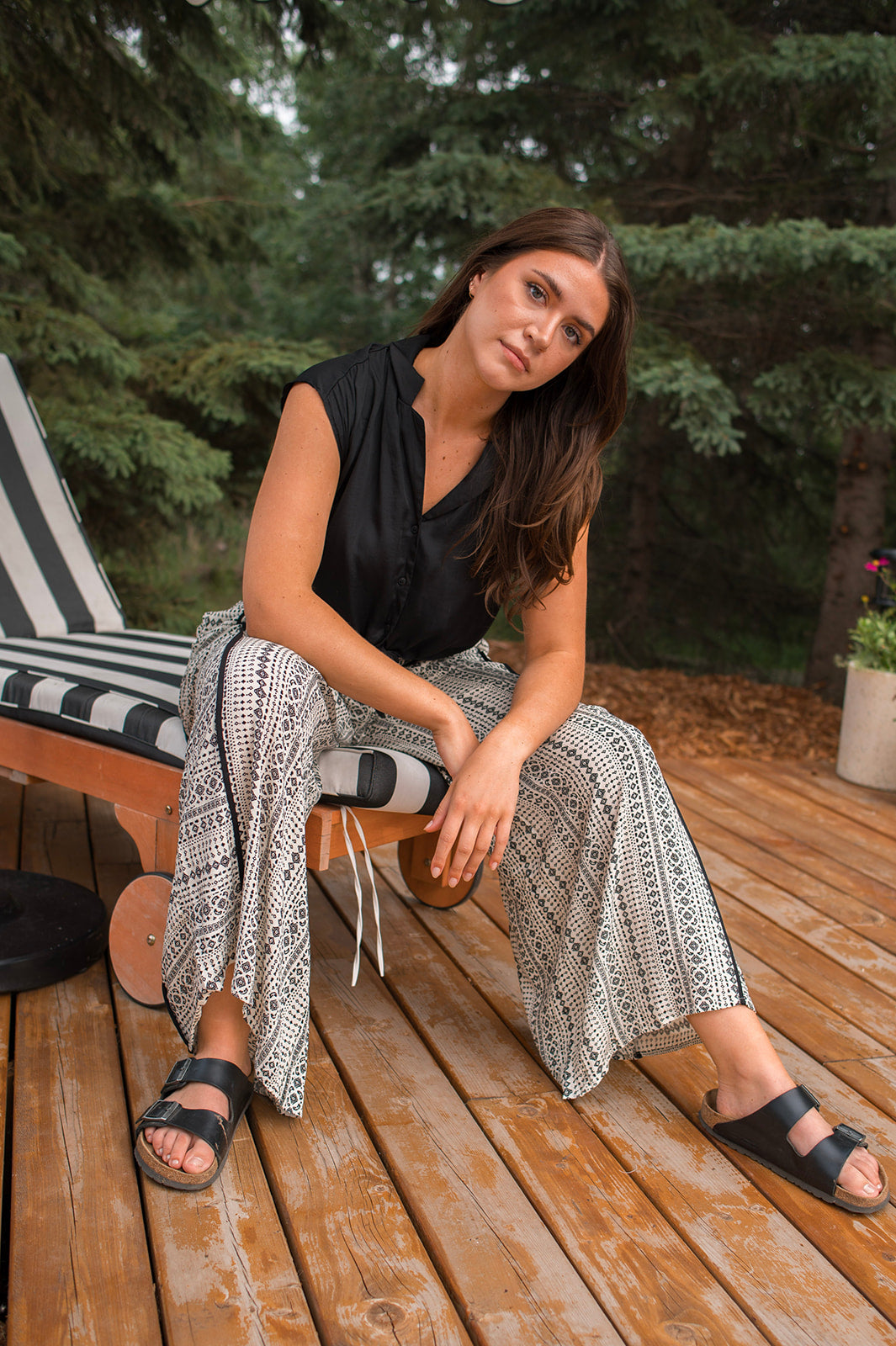 This blouse is such a good summer basic. We love the open spread collar, cap sleeve, and silky material. You can tie her up with a high waisted bottom, tuck her into some dress pants, or wear her out with denim. This is will be a great transition piece as we move into fall and winter which is a great bonus.