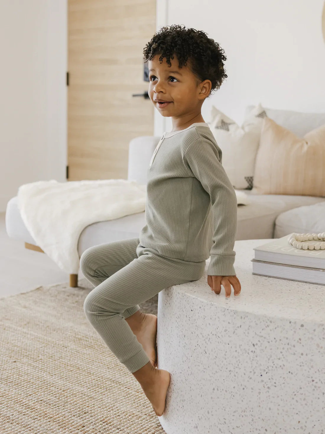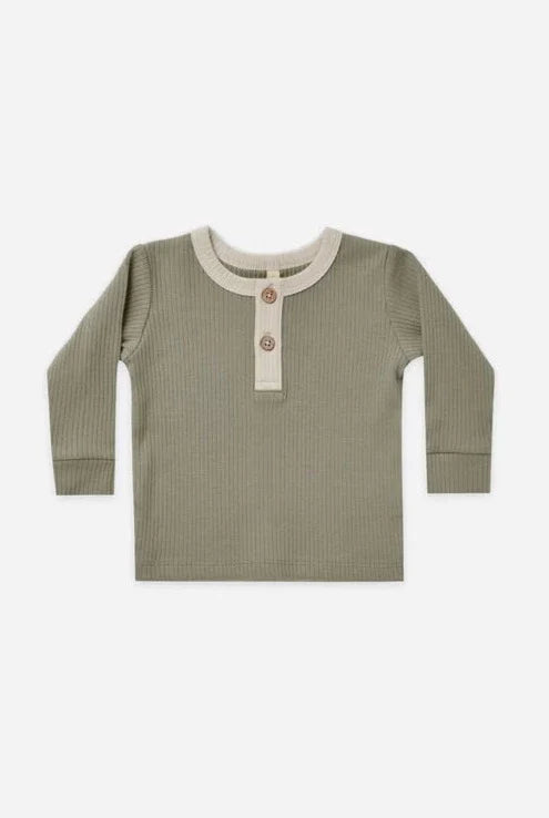 The Jessie Ribbed Long Sleeve Henley - Fern - BABY