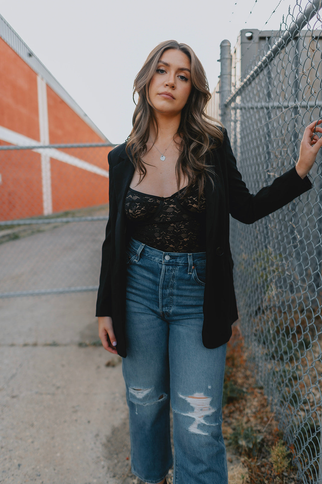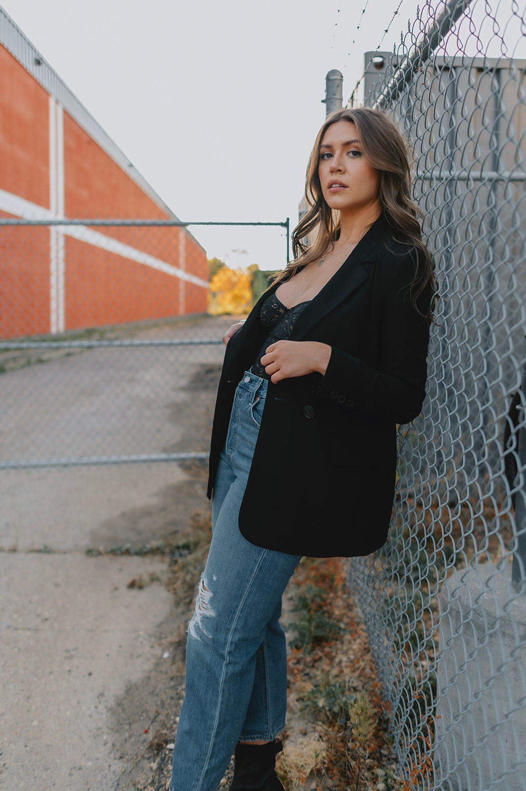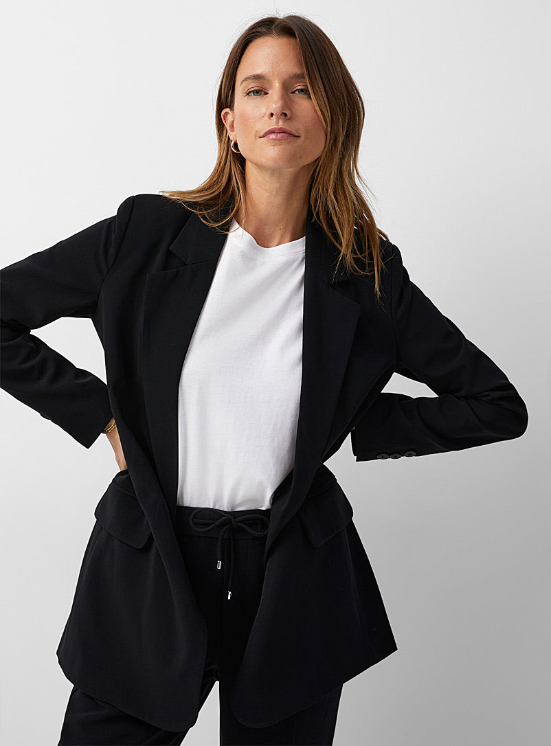 The Adian Blazer is a versatile blazer, crafted from a supple fabric in a REPREVEᴹᴰ polyester blend made of recycled plastic bottles. It is designed with a slightly oversized fit, and one button closure.