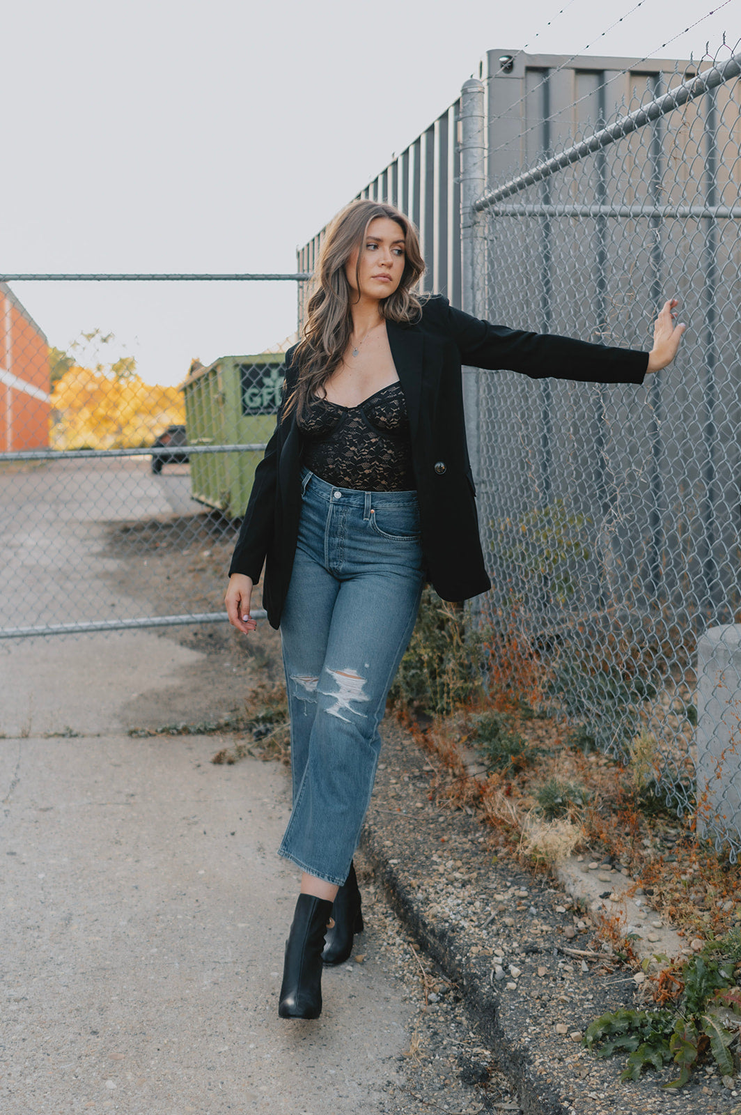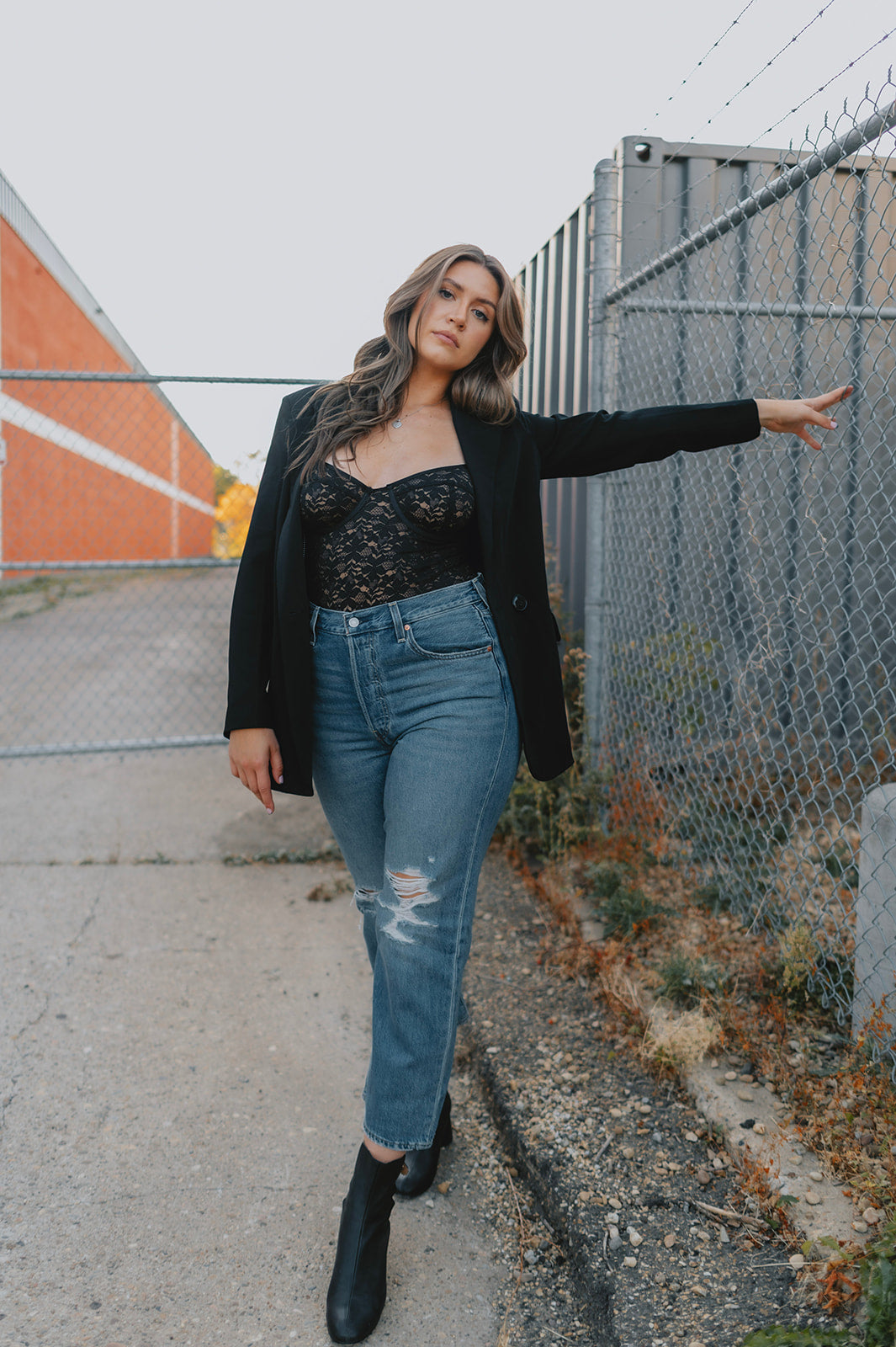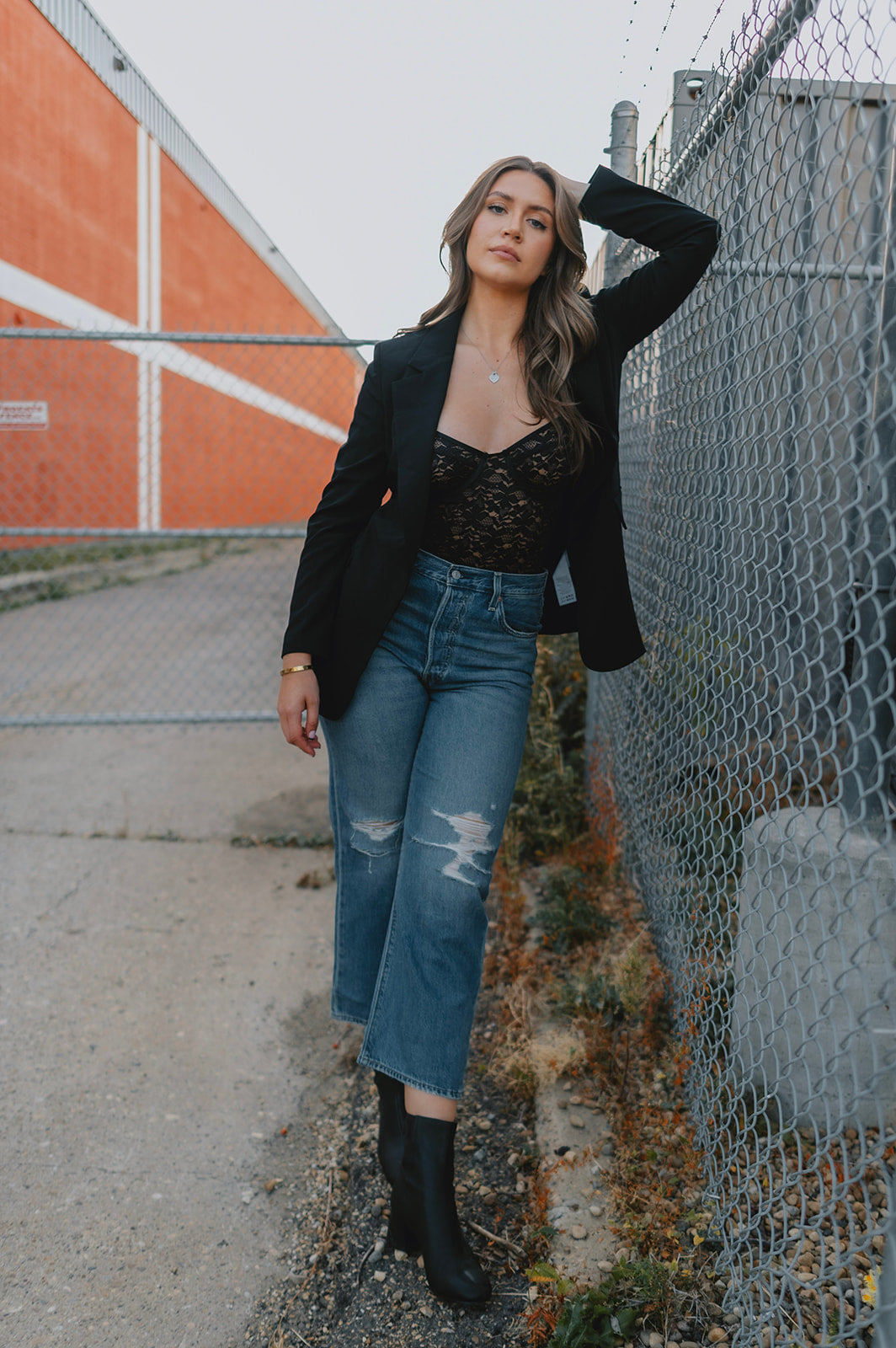 The Adian Blazer is a versatile blazer, crafted from a supple fabric in a REPREVEᴹᴰ polyester blend made of recycled plastic bottles. It is designed with a slightly oversized fit, and one button closure.