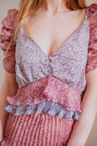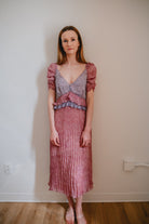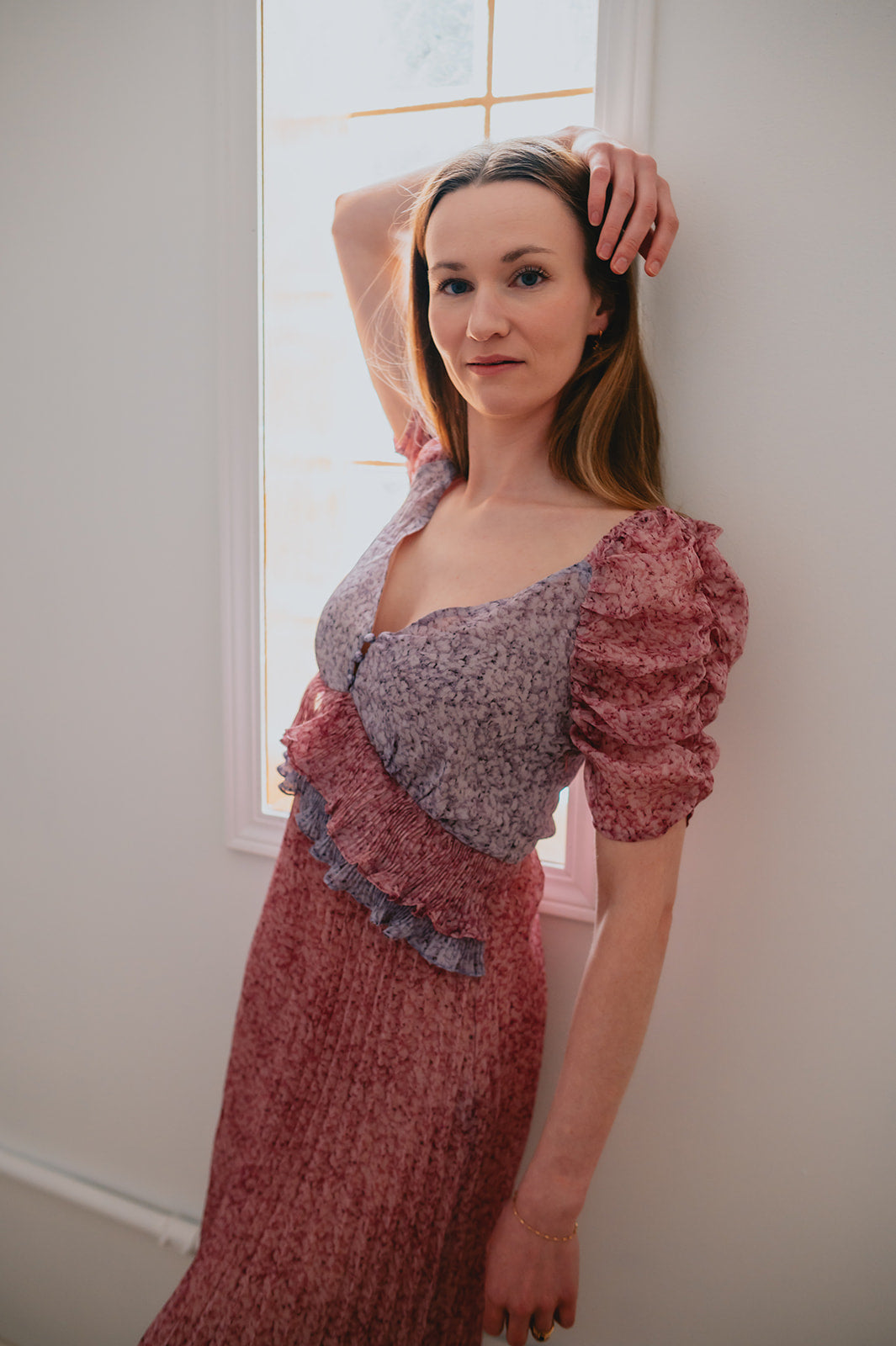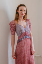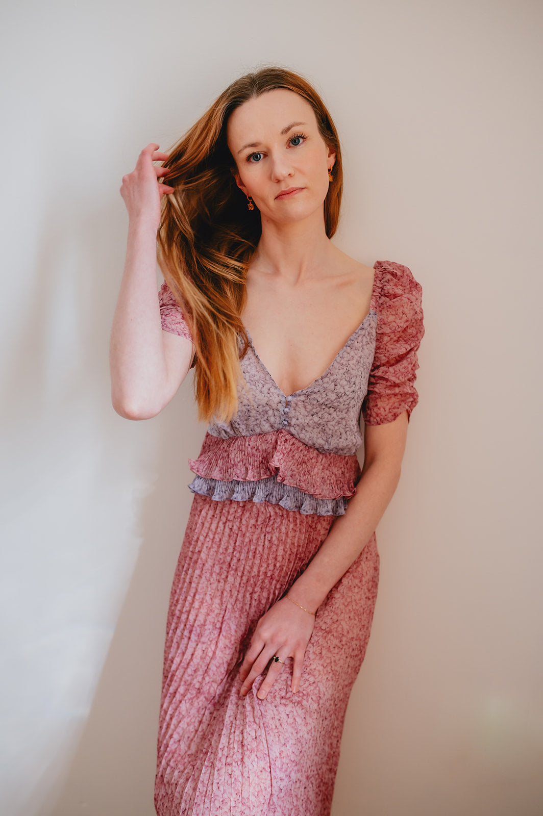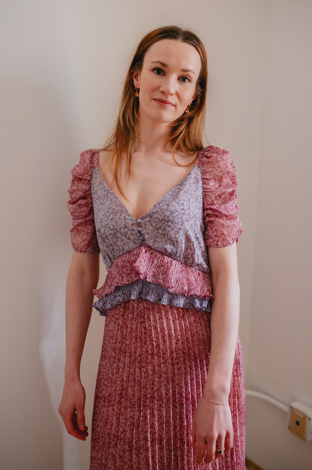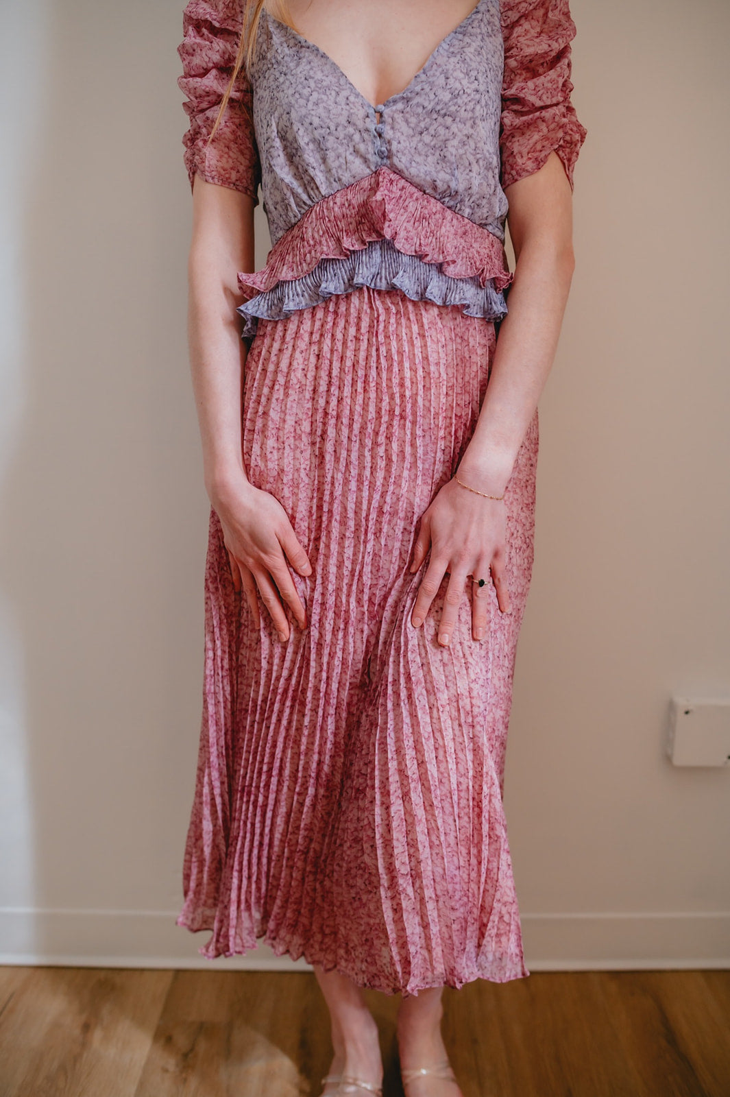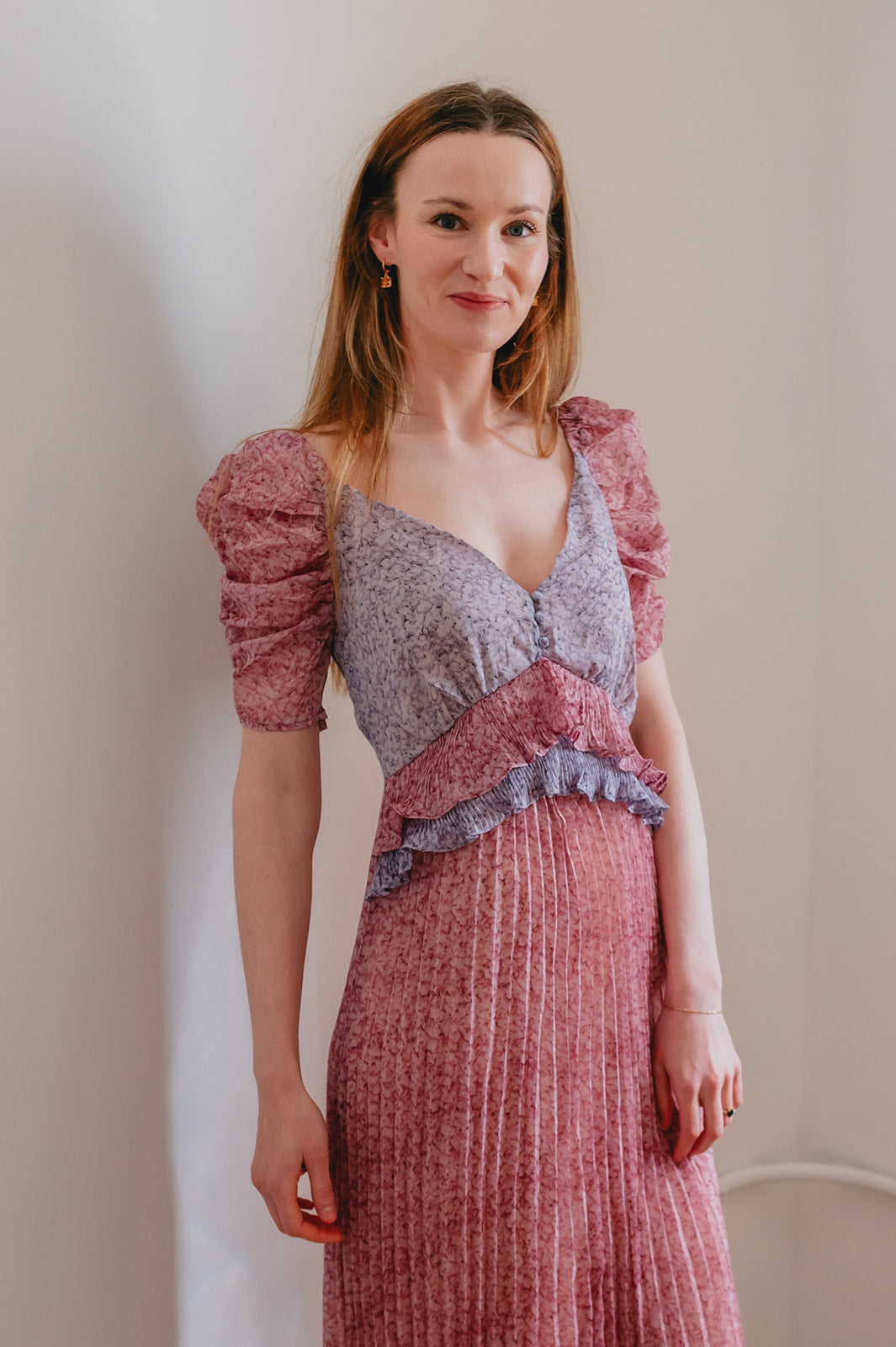 The Annie is as beautiful in real life as she looks in the photos. She's a pleated, colour-block dress with a gorgeous rouched sleeve and the most precious ruffle detail at the waist. Fully lined but still light and airy, this dress is perfect for a wedding, graduation, or Mother's Day brunch.