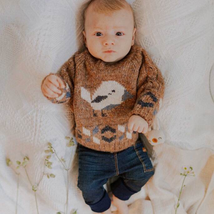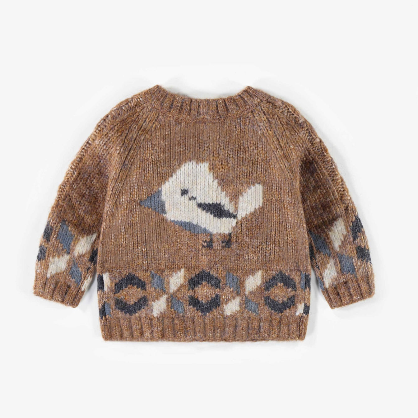 Machine wash cold inside out with similar colours. Hang to dry. Tumble dry low.The Brown Bird Knit Cardigan - BABY