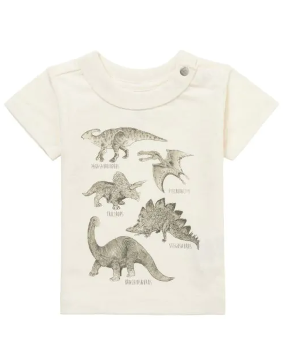 The Dino Moments T-shirt boasts a cool prehistoric print, which you can instantly use to test your dinosaur knowledge. The shirt is beautifully soft and stretchy. The press stud along the neckline will make getting dressed and undressed a great deal easier.