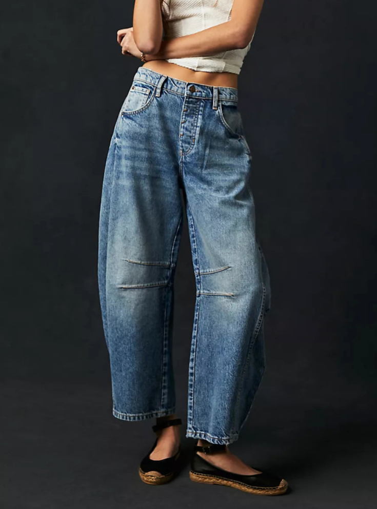 - Why We ❤ It: This playful pair of jeans is a fun silhouette to add to your denim collection — we recommend ordering your true size for a traditional fit, or sizing up for a low-slung, baggy style.