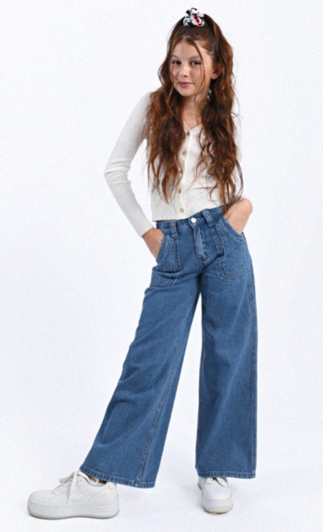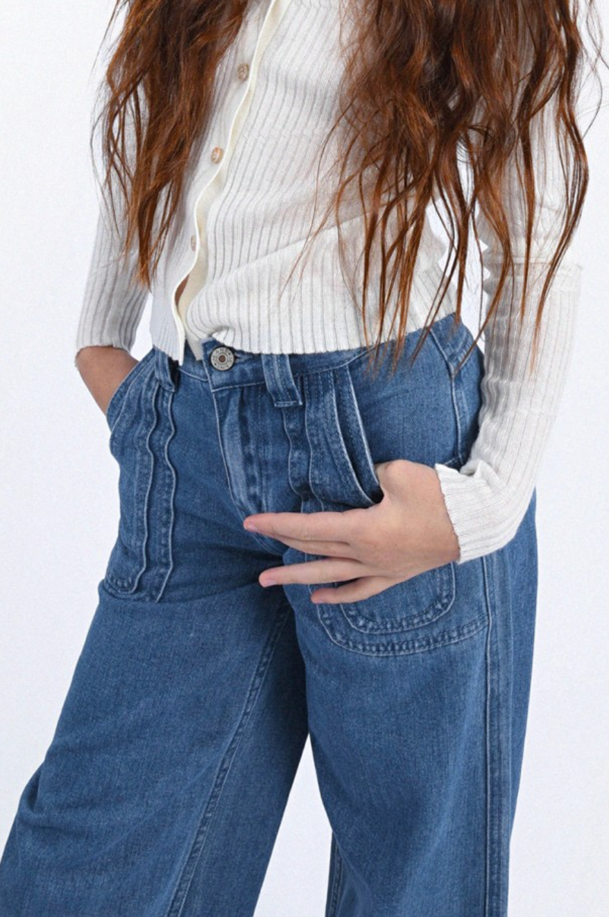 The Jones Wide Leg Denim Pants - Denim Blue - KIDS
