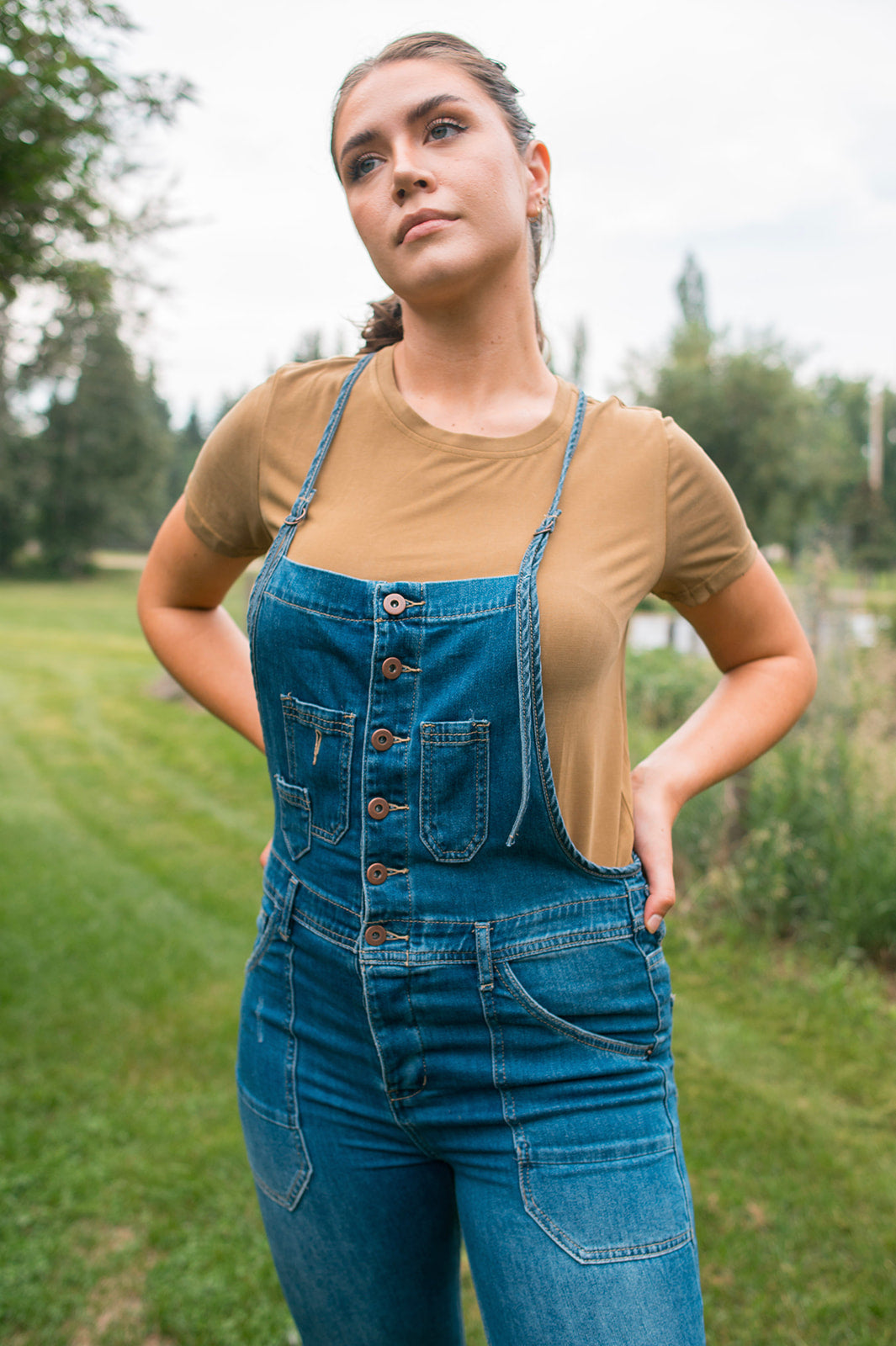 We love a good overall and we are crushing on the details that make this pair stand out from the pack. She has thin adjustable top straps, full front buttons, and cool utility pockets. She's got a straight cut leg but still hugs to give shape and the cotton material keeps things comfy.