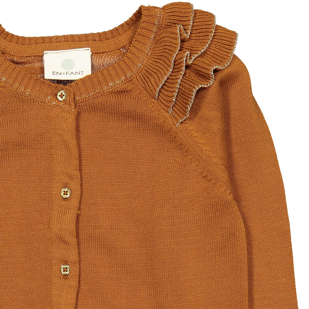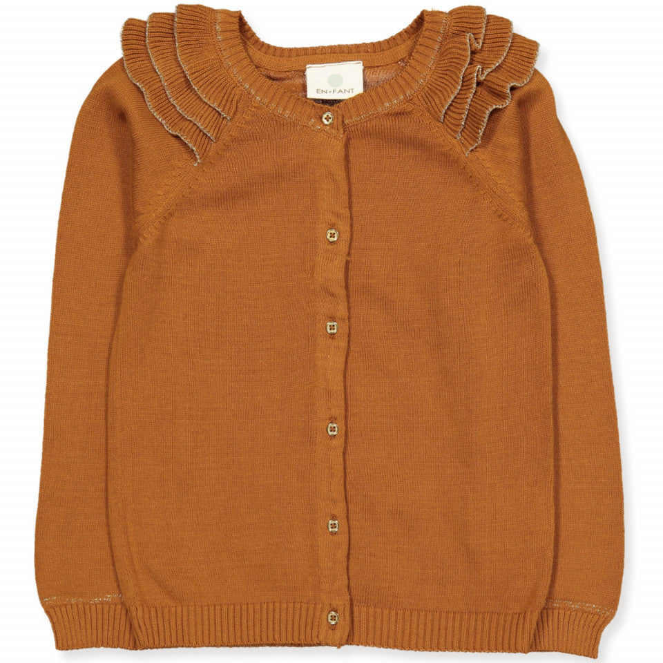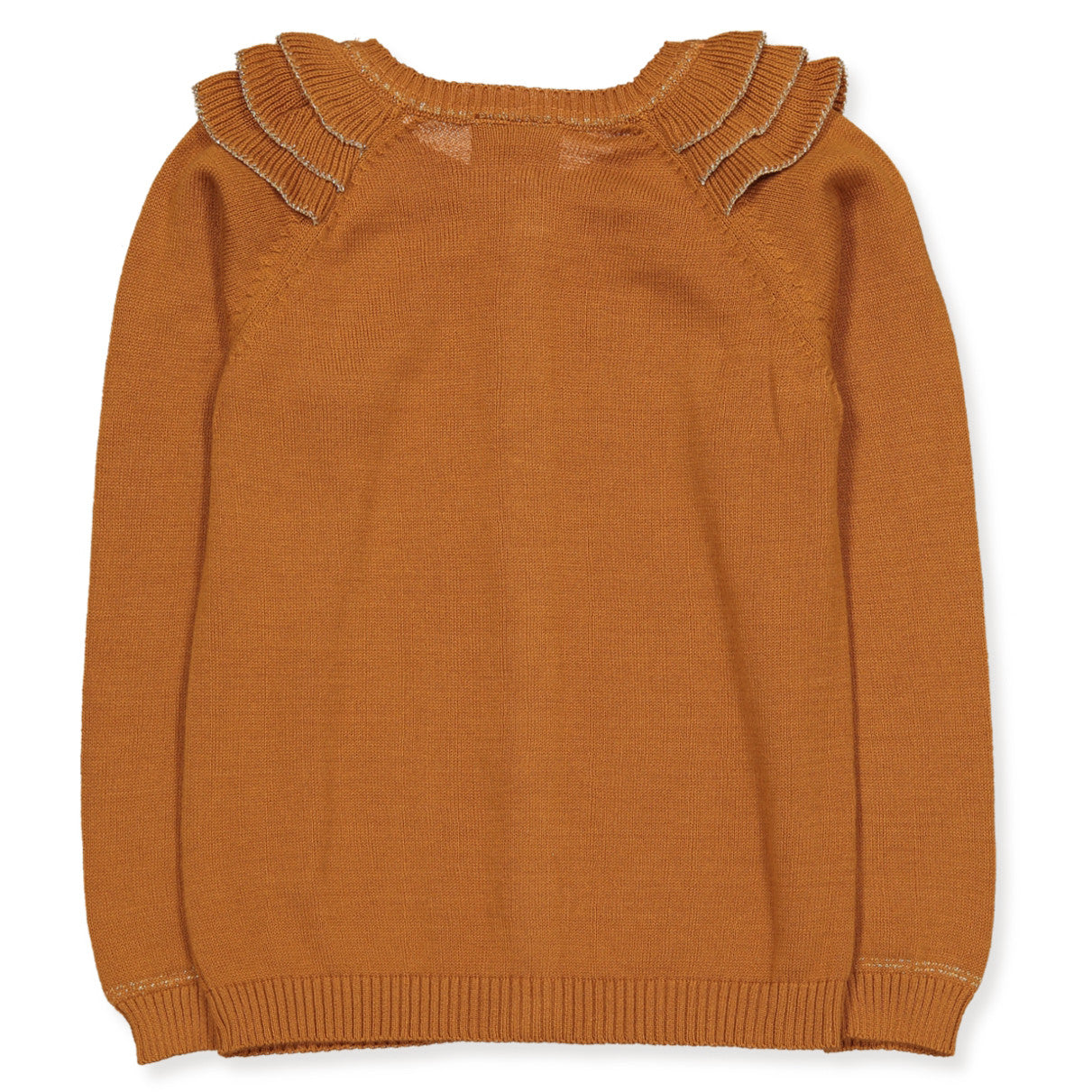 Did someone say cardi? This new London Cardigan is the perfect layering piece, in the most unique Burnt Orange colour. Detailed with functional front buttons, Ruffled shoulders and gold details.