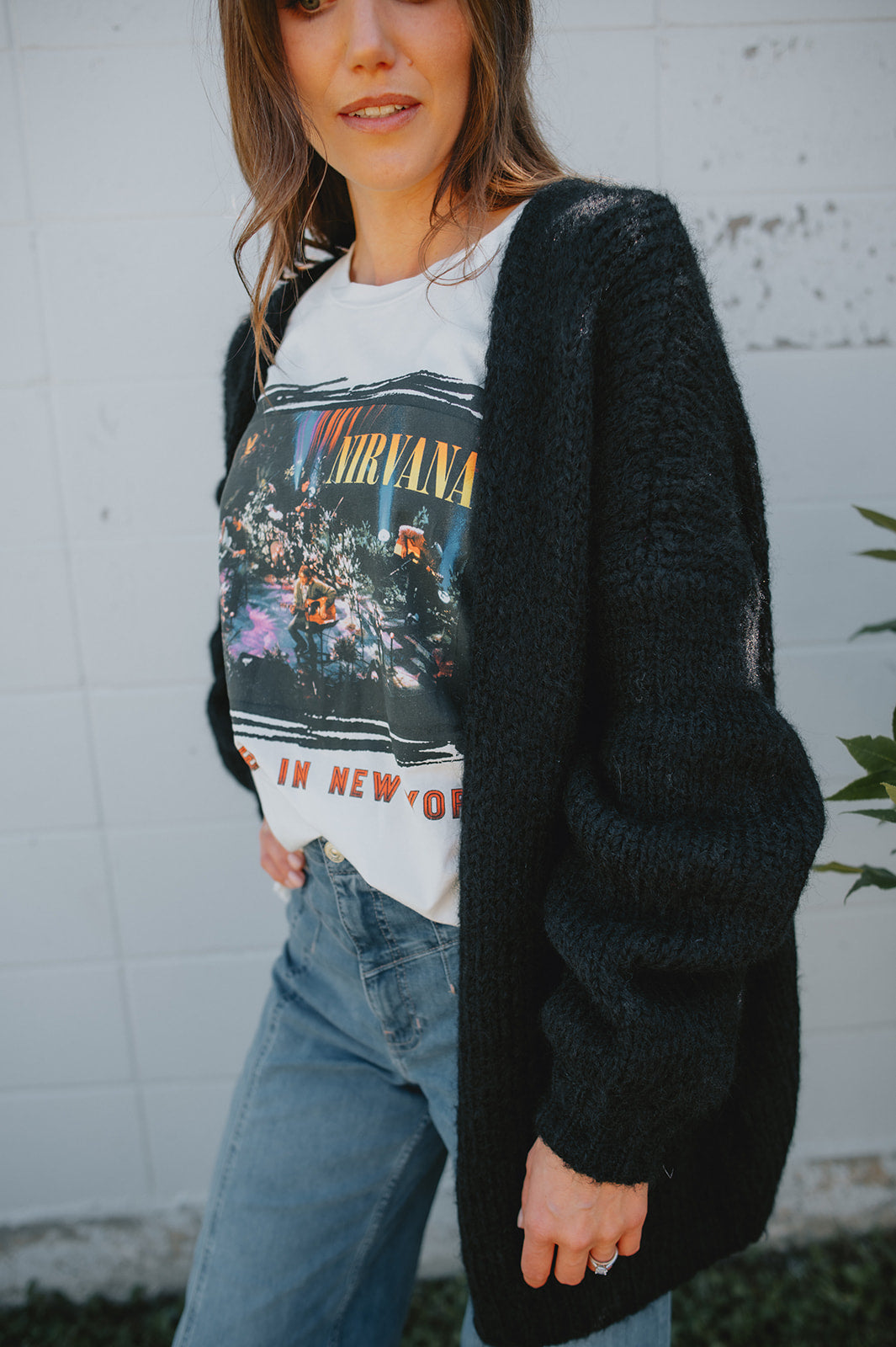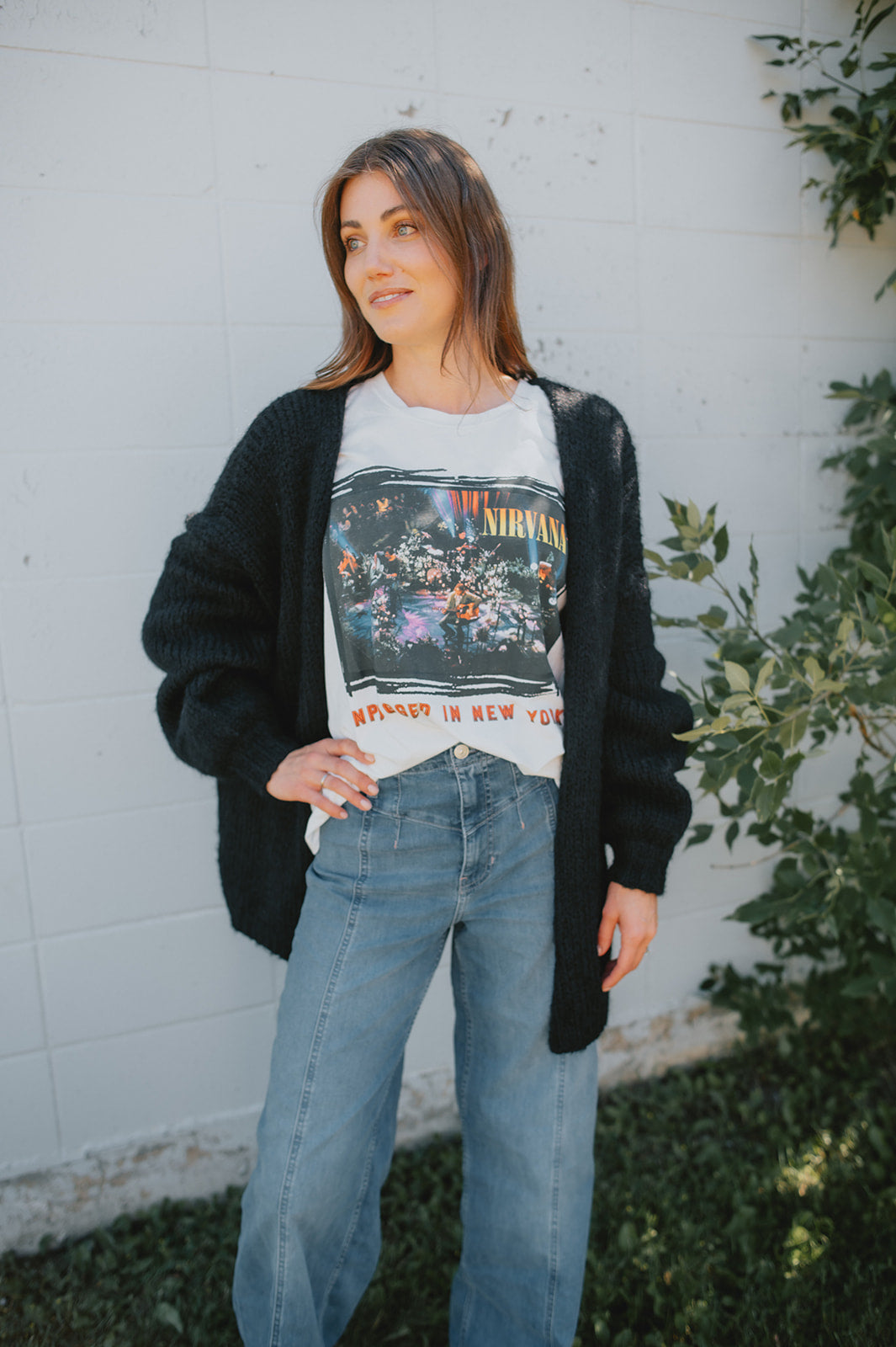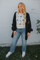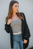 Indulge in the luxurious feel of its fuzzy knit fabric, delicately woven to provide a cloud-like softness against your skin. Whether you're lounging at home, running errands, or enjoying a night out, this cardigan is the perfect companion for any occasion.