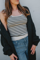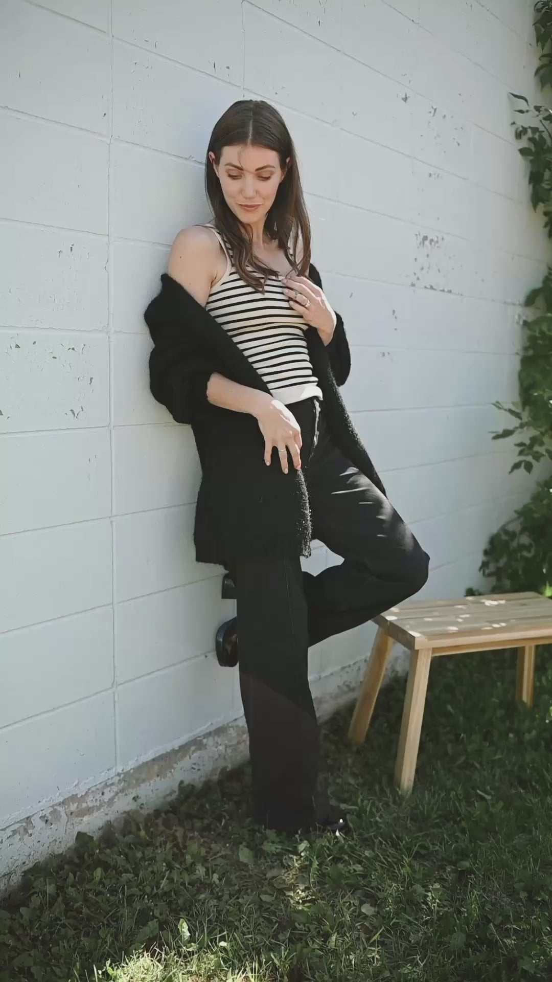 - Stefanie (Brunette, Graphic Tee + Striped Tank) is wearing a XS
