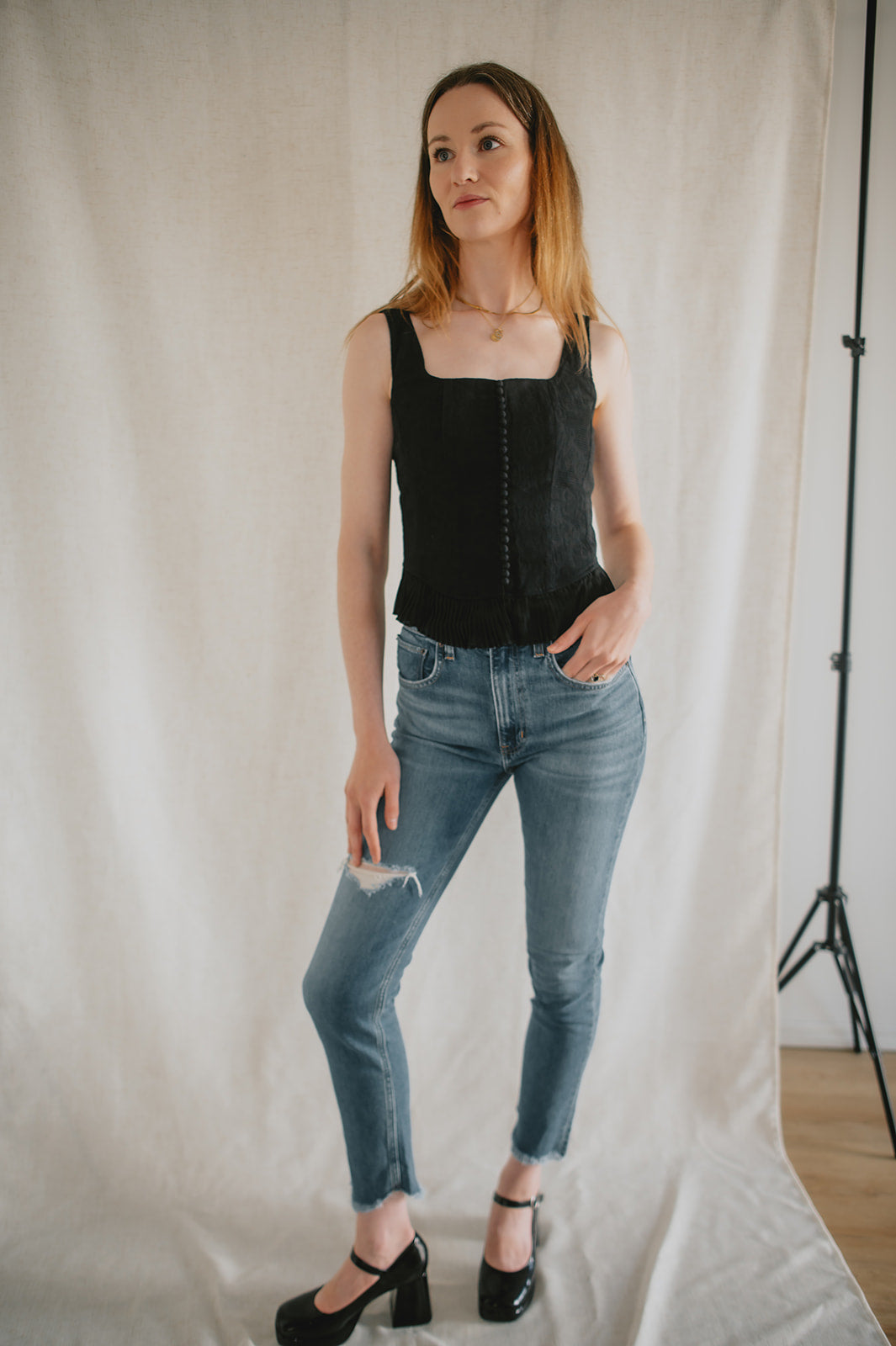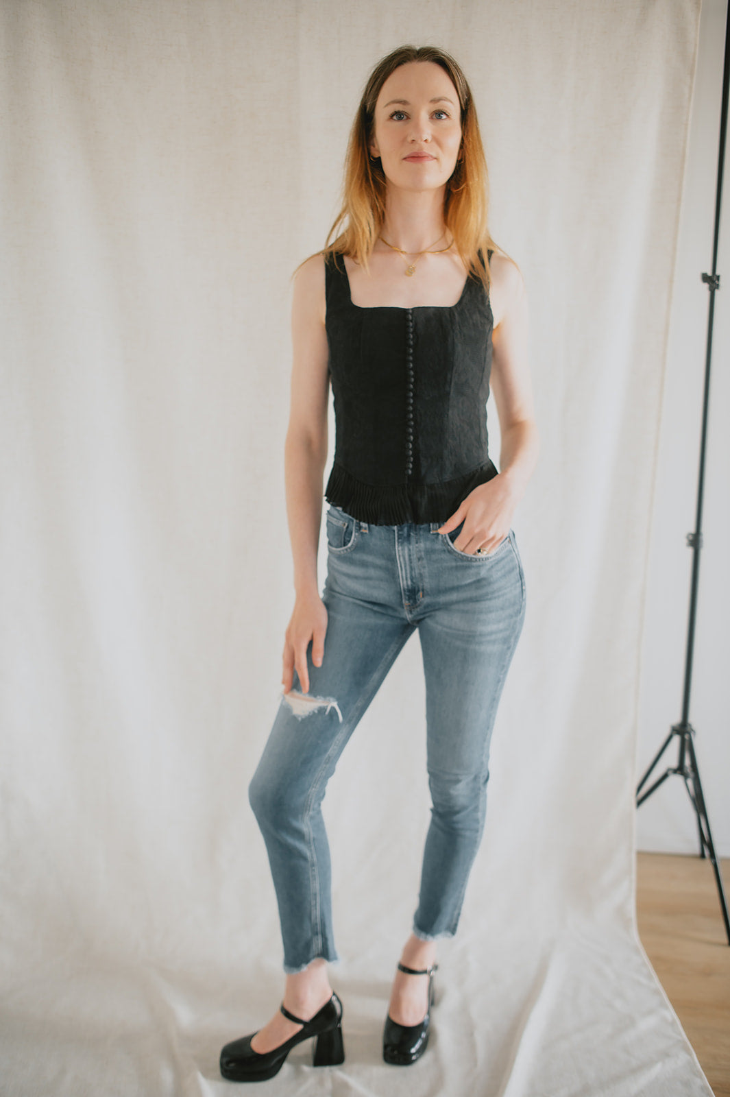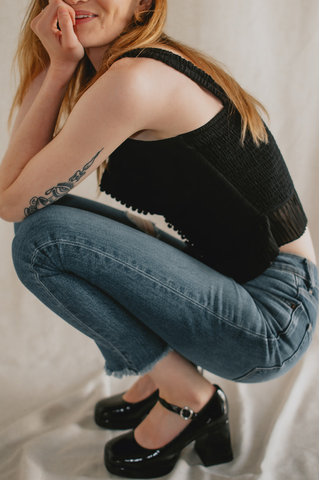 A classic Mary Jane is re-imagined with MINGLE. Featuring a lovely black patent and an angular block heel, you can wear these with everything from a plaid skirt to jeans for the ultimate 90s look.