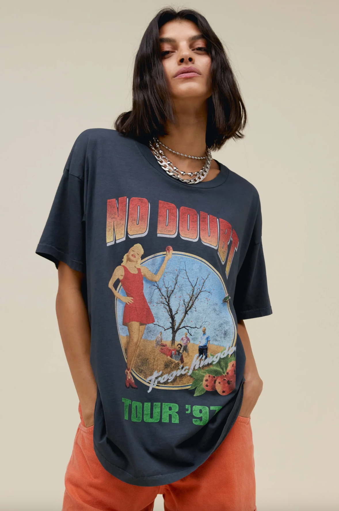A Hella Good tee drops in featuring No Doubt’s most successful album “Tragic Kingdom.” Spawning so many smash hits and soaring the charts with a massive uptick in fans, the album caught mainstream attention setting off a revival of ska. No doubt, you’ll want to scoop this vintage black merch tee right up.