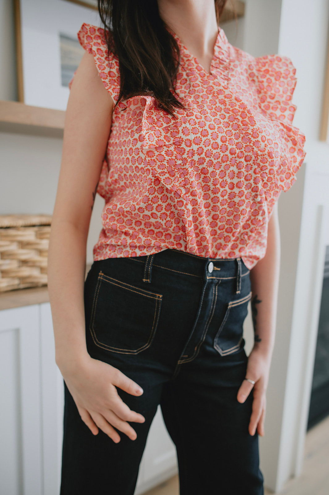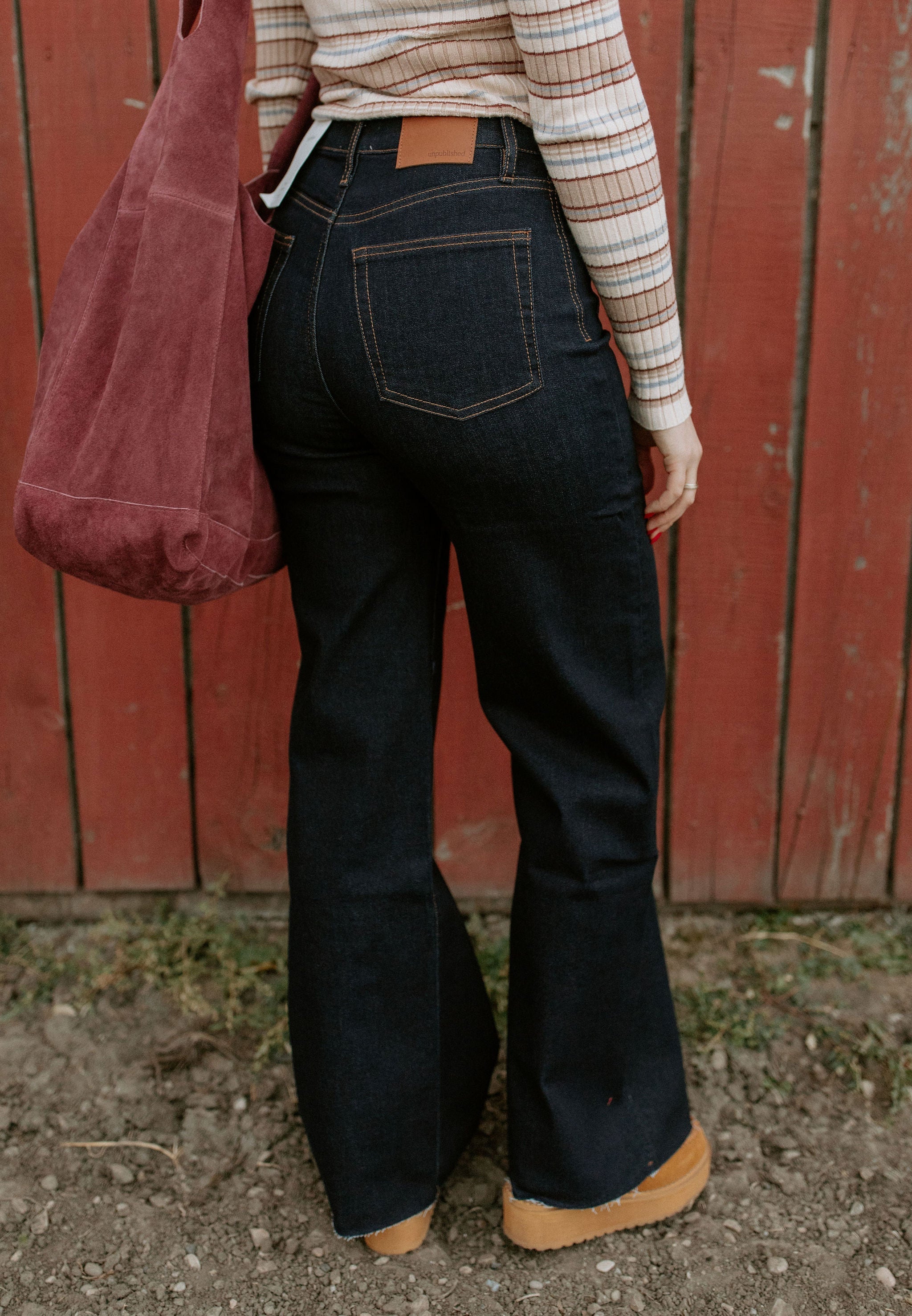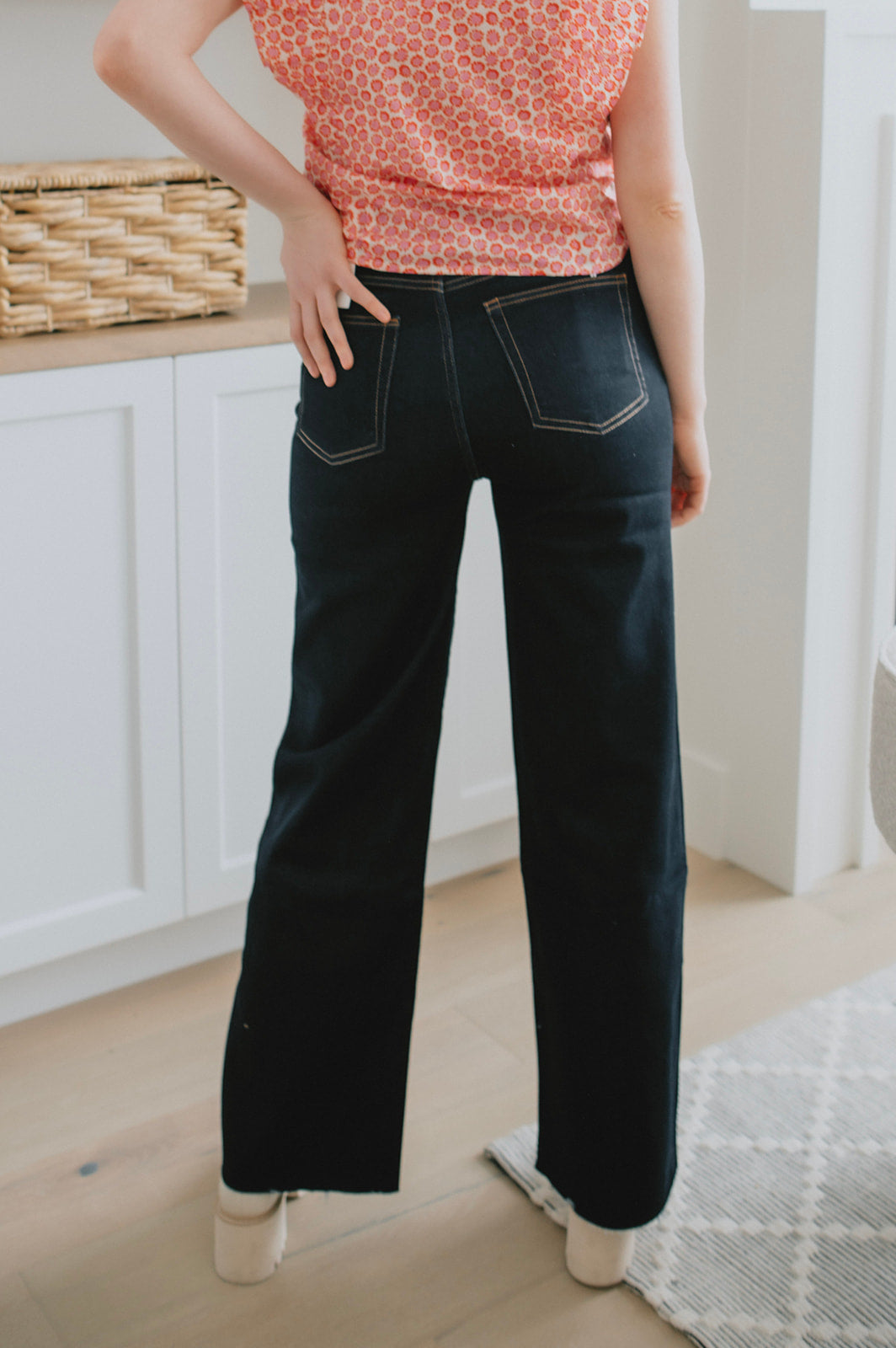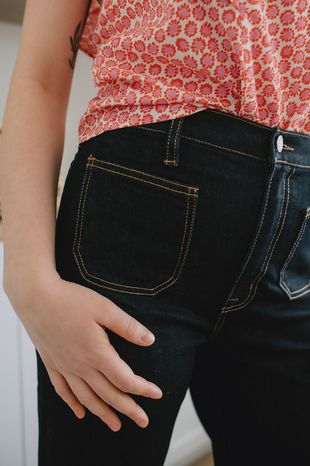 Noemi, a fan favourite high-rise wide leg. Now in a longer, full-length inseam. Featuring sailor-pocket styling and antique nickel hardware.