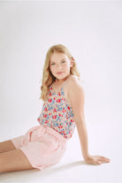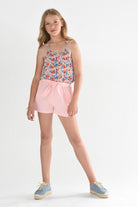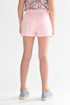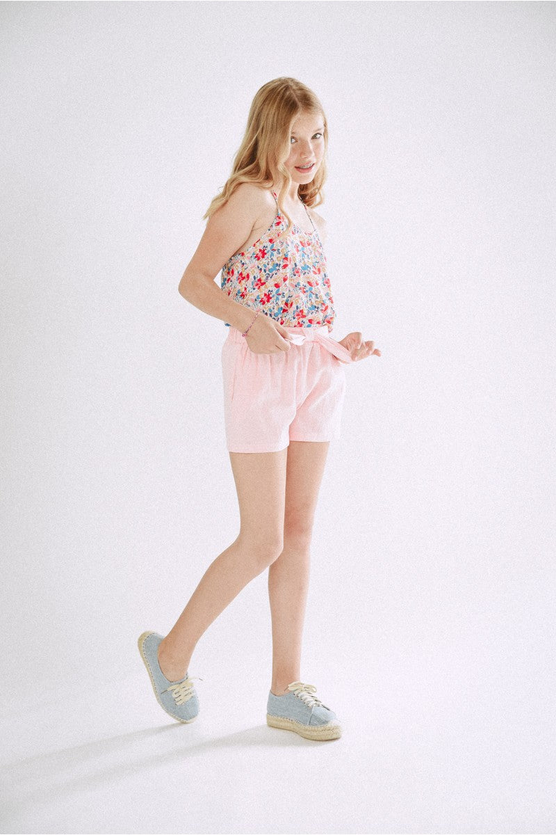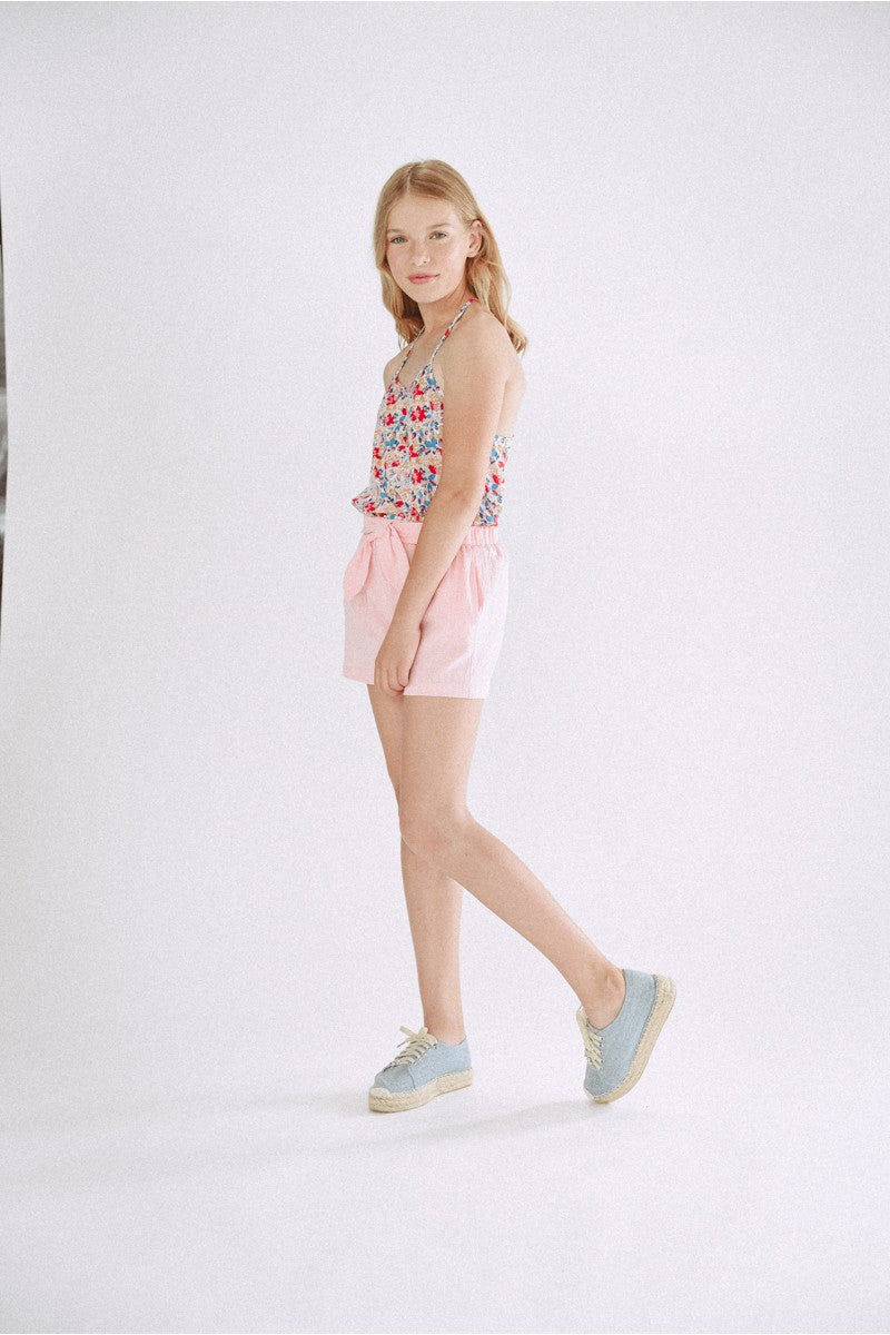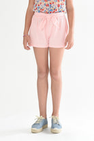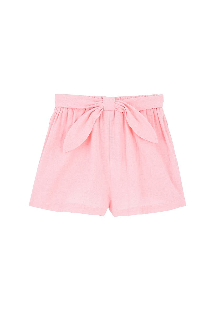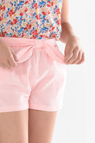 Sweet and perfect for our warm months ahead! Breathable cotton shorts, with a pleated bow detail on the front, elasticated waist in the back, and pockets on the sides.