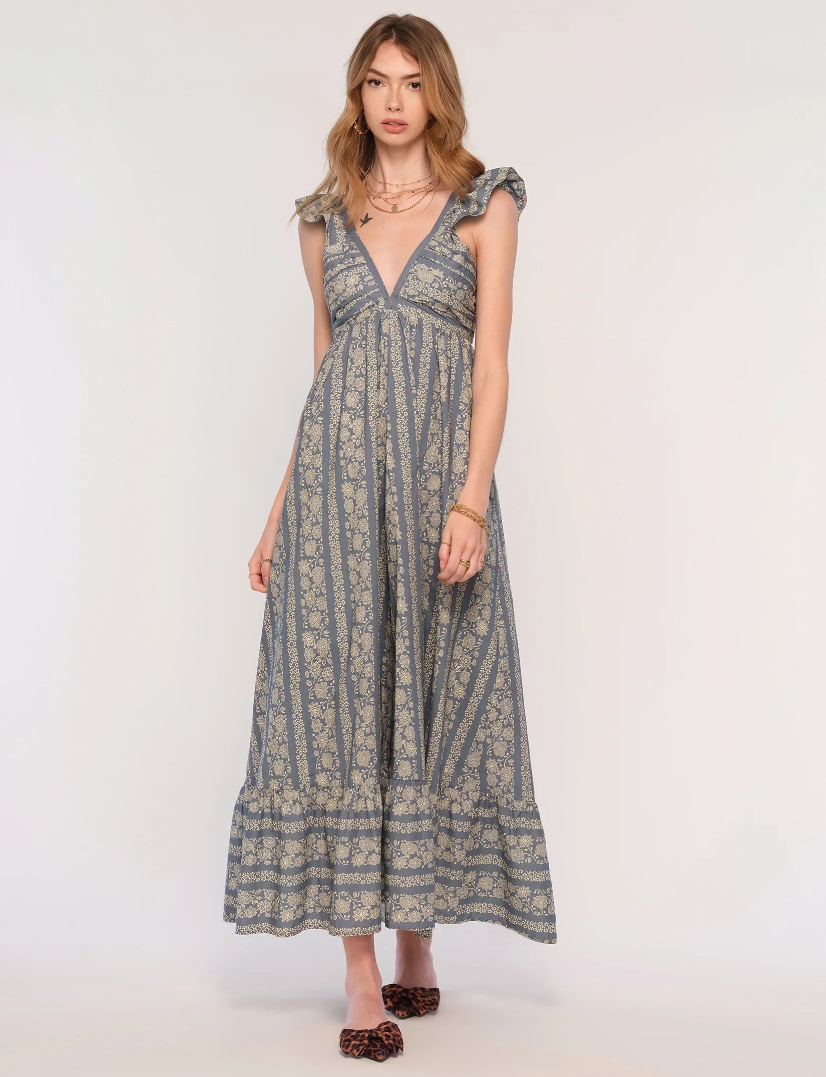 The Prima Dress is a fan favourite in a new, vintage inspired print. Crafted from a crepe de chine, it boasts a feminine silhouette with a V-neckline, cinched waist, and full skirt. Its effortless style makes it perfect for any occasion.