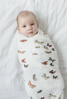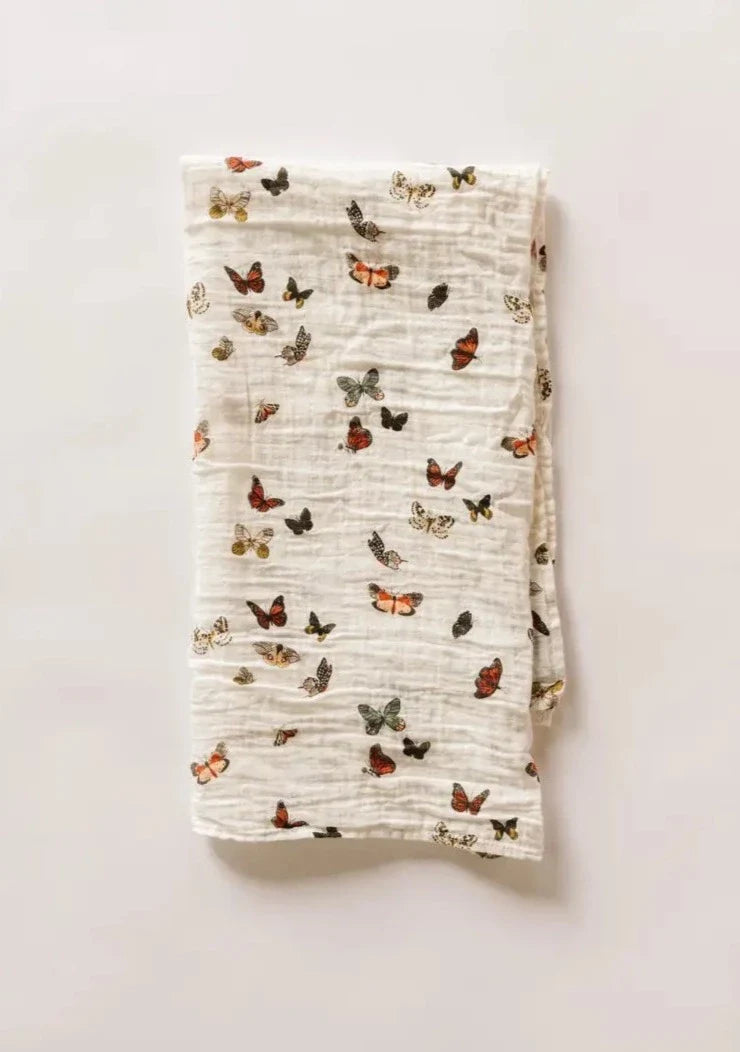 The 'everything' swaddle blanket! 47x47 inches. Made of 100% cotton muslin, and only gets softer with time. Lightweight and breathable.