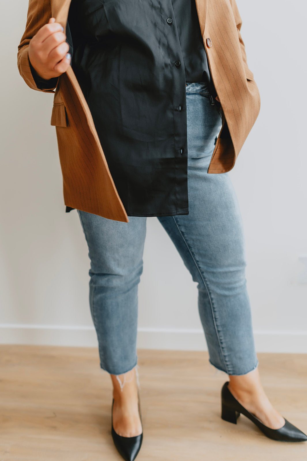A gorgeous satin button-down shirt for any and all occasions! Slightly oversized, with functional buttons and structured collar.